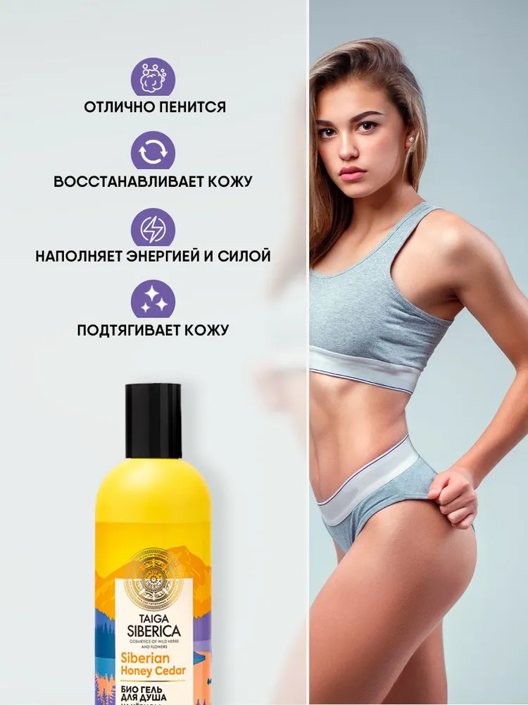 Полная перезагрузка тела и духа, восстановление жизненных сил и энергии, все это стало возможно благодаря сочетанию дикого черного меда и свежесобранных таежных трав в геле для душа Кедровое SPA.