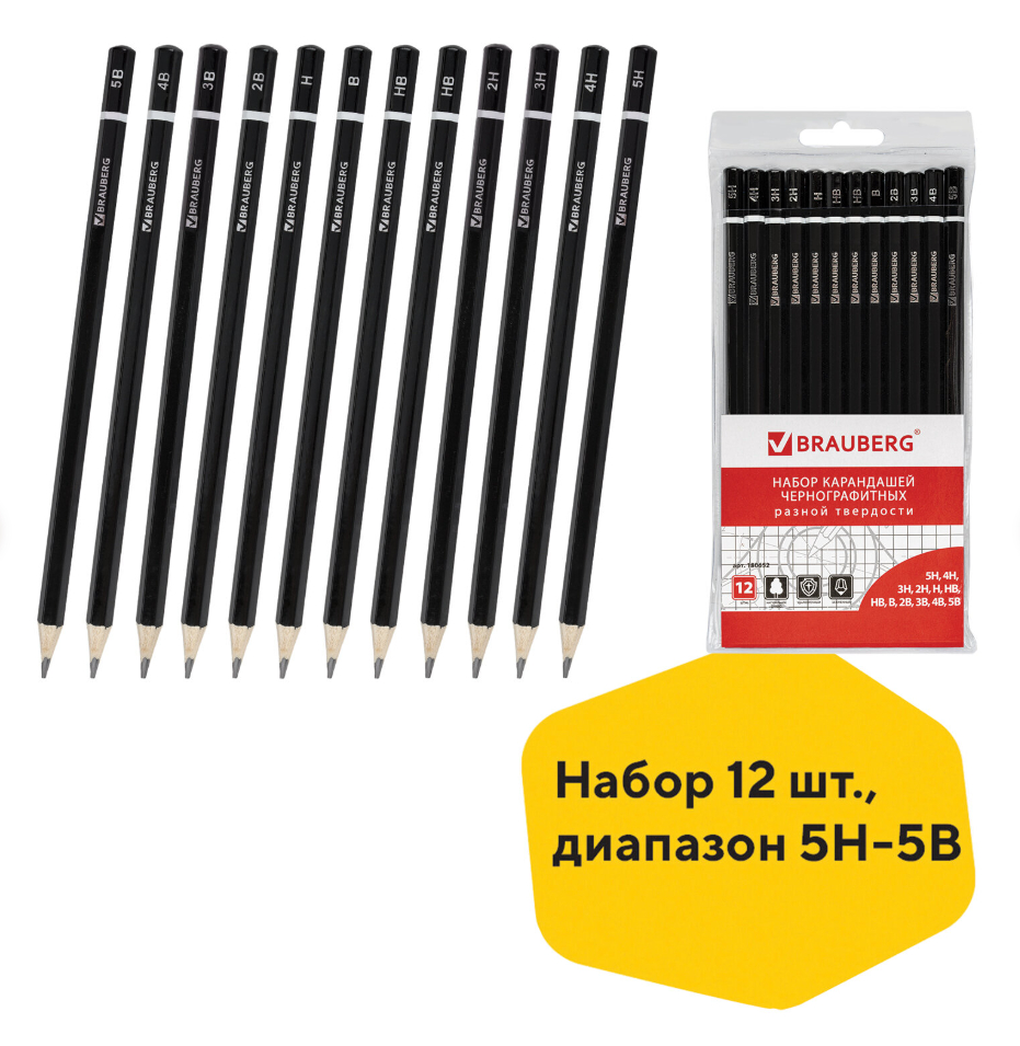 Набор карандашей чернографитных "Brauberg Line" (12 шт.)