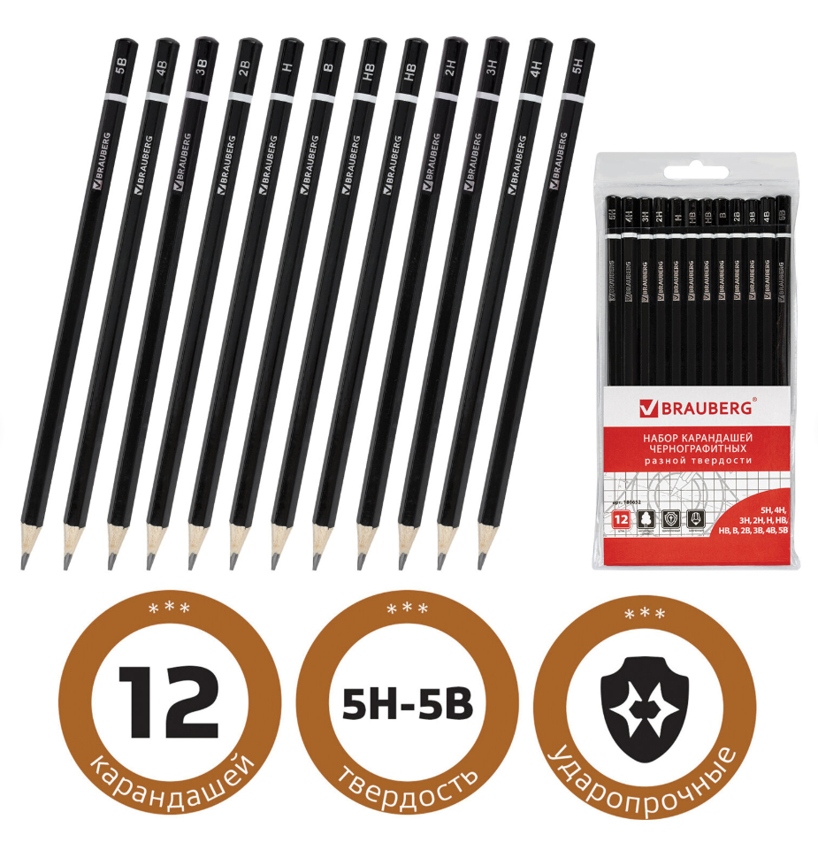 Набор чернографитных карандашей Brauberg "Touch line" – первый помощник для создания легкого наброска или быстрого стремительного рисунка, а может и полноценной картины! Также подходит для выполнения проектно-конструкторских работ.