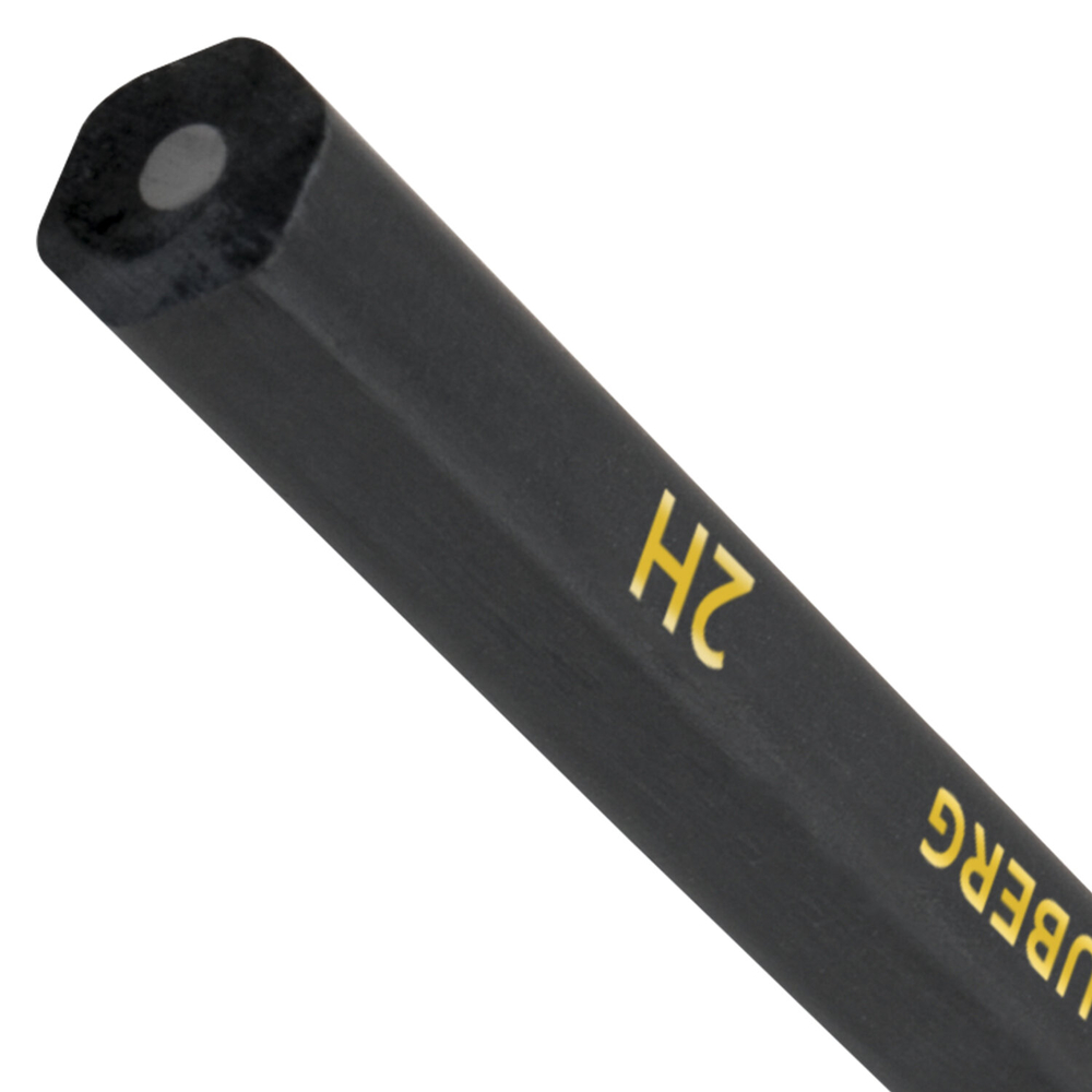Набор состоит из карандашей различных степеней твердости: 2H – 1 штука, Н – 1 штука, НВ – 2 штуки, В – 2 штуки, 2B – 2 штуки, 3B – 2 штуки, 4B – 2 штуки. Диаметр грифеля – 2,05 мм.