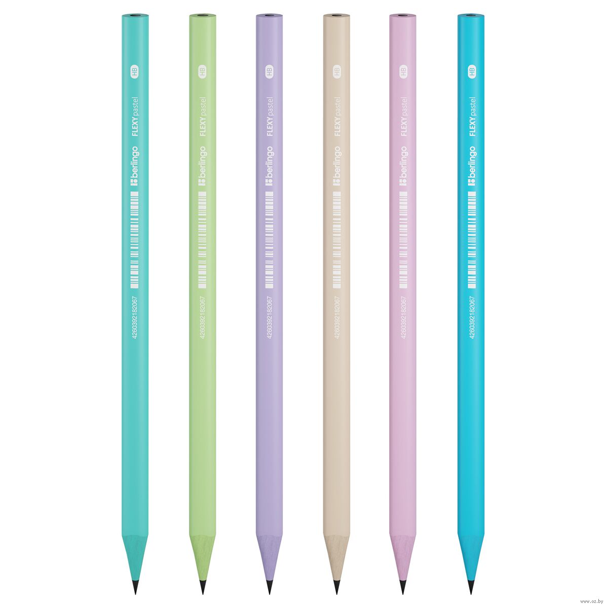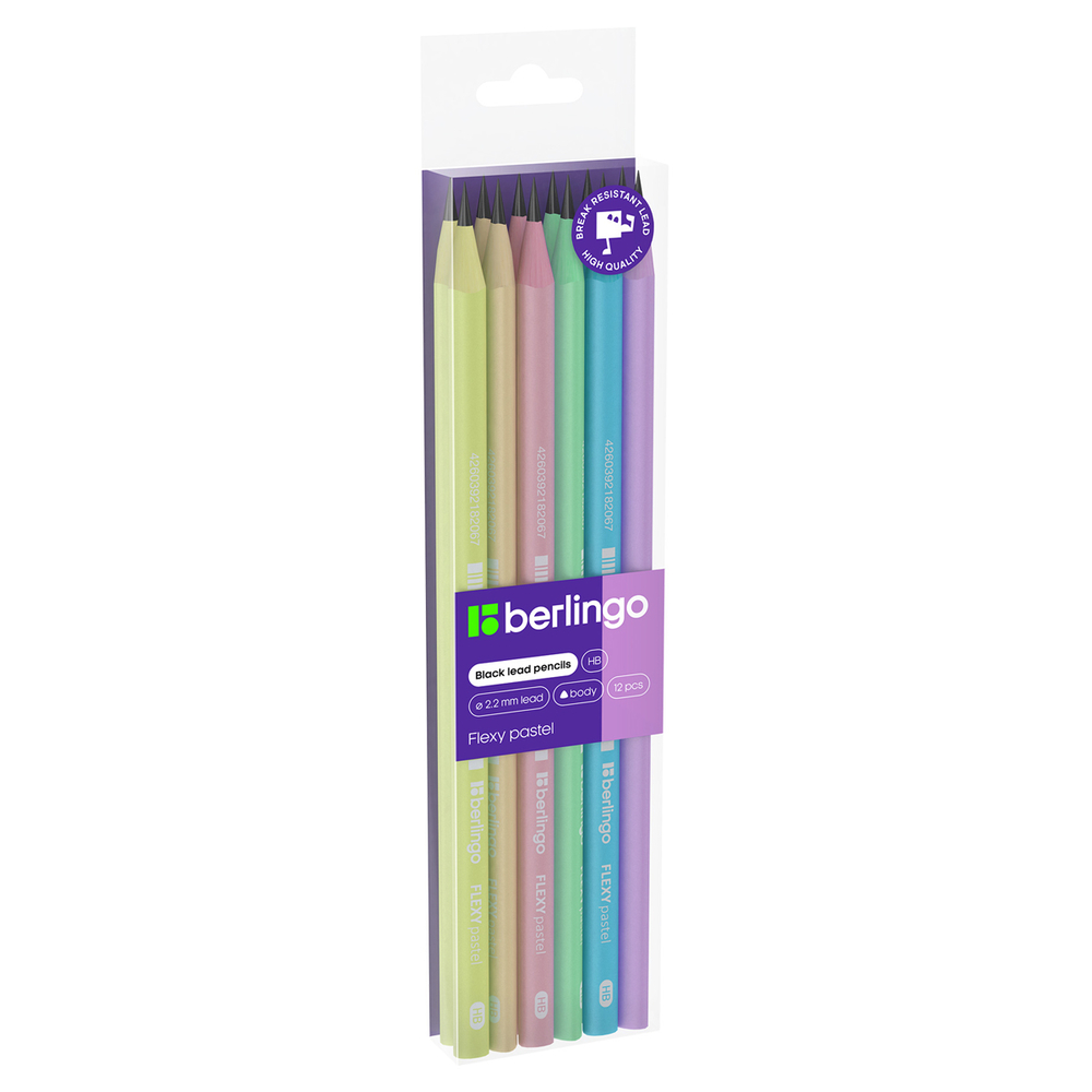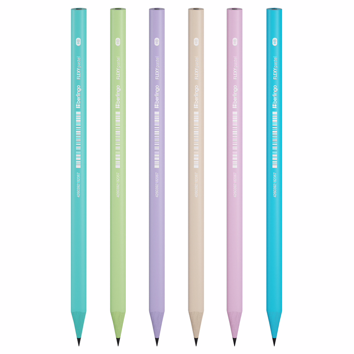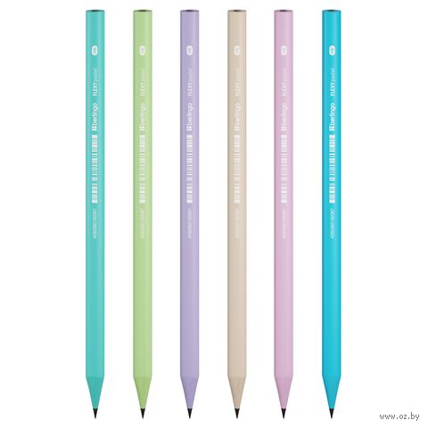 Чернографитный ударопрочный пластиковый карандаш Berlingo "Flexy Pastel" с цветным материалом копруса, с заточкой. Стильный корпус в пастельных тонах в сочетании с цветным пластиком в тон корпуса карандаша и белым лого.