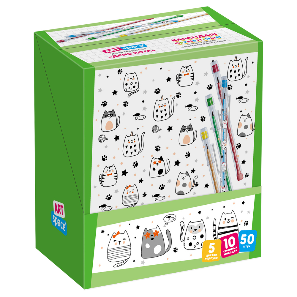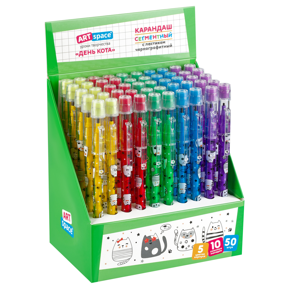 Карандаш чернографитный сегментный "День кота" удобен для школьников, особенно младших классов. Сегмент можно быстро заменить на новый.