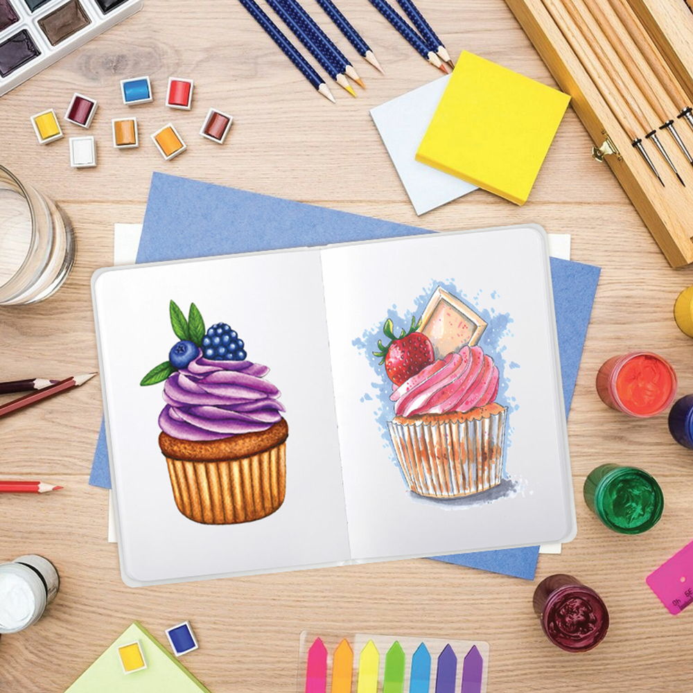 Удобным дополнением является эластичная резинка, которая не даст блокноту случайно раскрыться в рюкзаке или сумке. Скетчбук станет отличным выбором для новичков с самого раннего возраста и любителей.