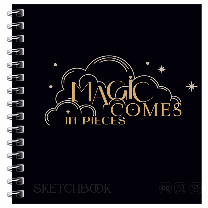 Скетчбук для зарисовок BG "Magic comes" состоит из 40 листов бумаги белого цвета, плотностью 120г/м2. Блокнот размером 170х170 мм удобно взять с собой. Листы скреплены спиралью по боковому краю, что позволяет переворачивать их как на 180, так и на 360 градусов. Блок на гребне делает использование тетради для зарисовок комфортным и надёжным. Все рисунки и записи будут храниться в одном месте.