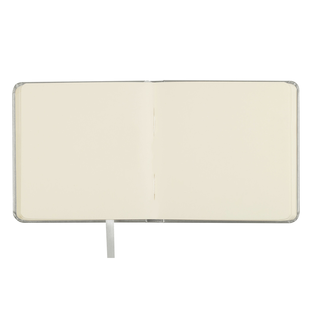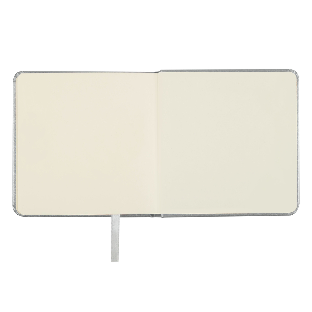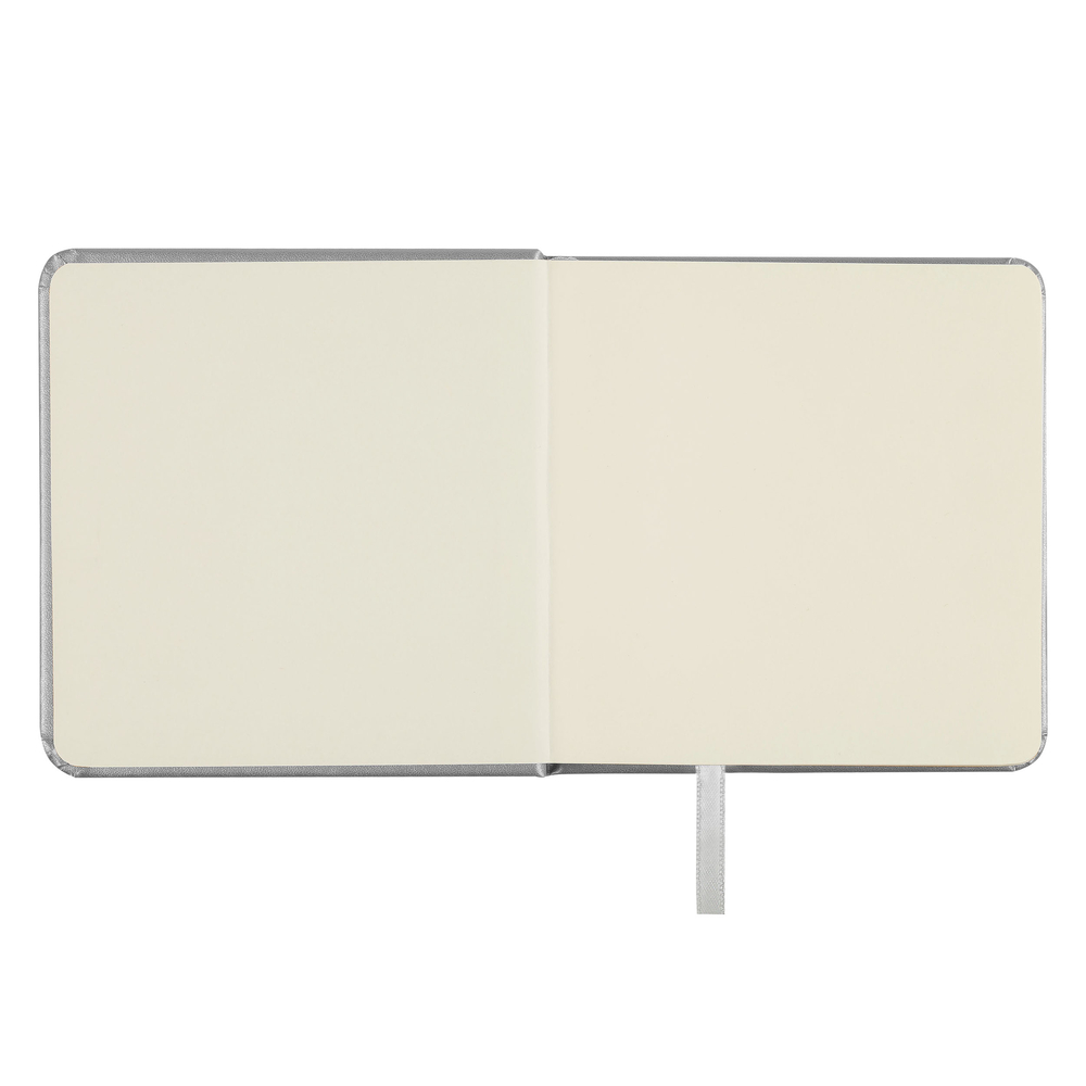 Лаконичный дизайн, компактный размер и жёсткая обложка серебряного цвета обеспечивают удобство зарисовок на прогулке или в путешествии. Закладка-ляссе помогает быстро открыть скетчбук на нужной странице, а эластичная резинка предотвращает листы от замятия и случайного открытия.