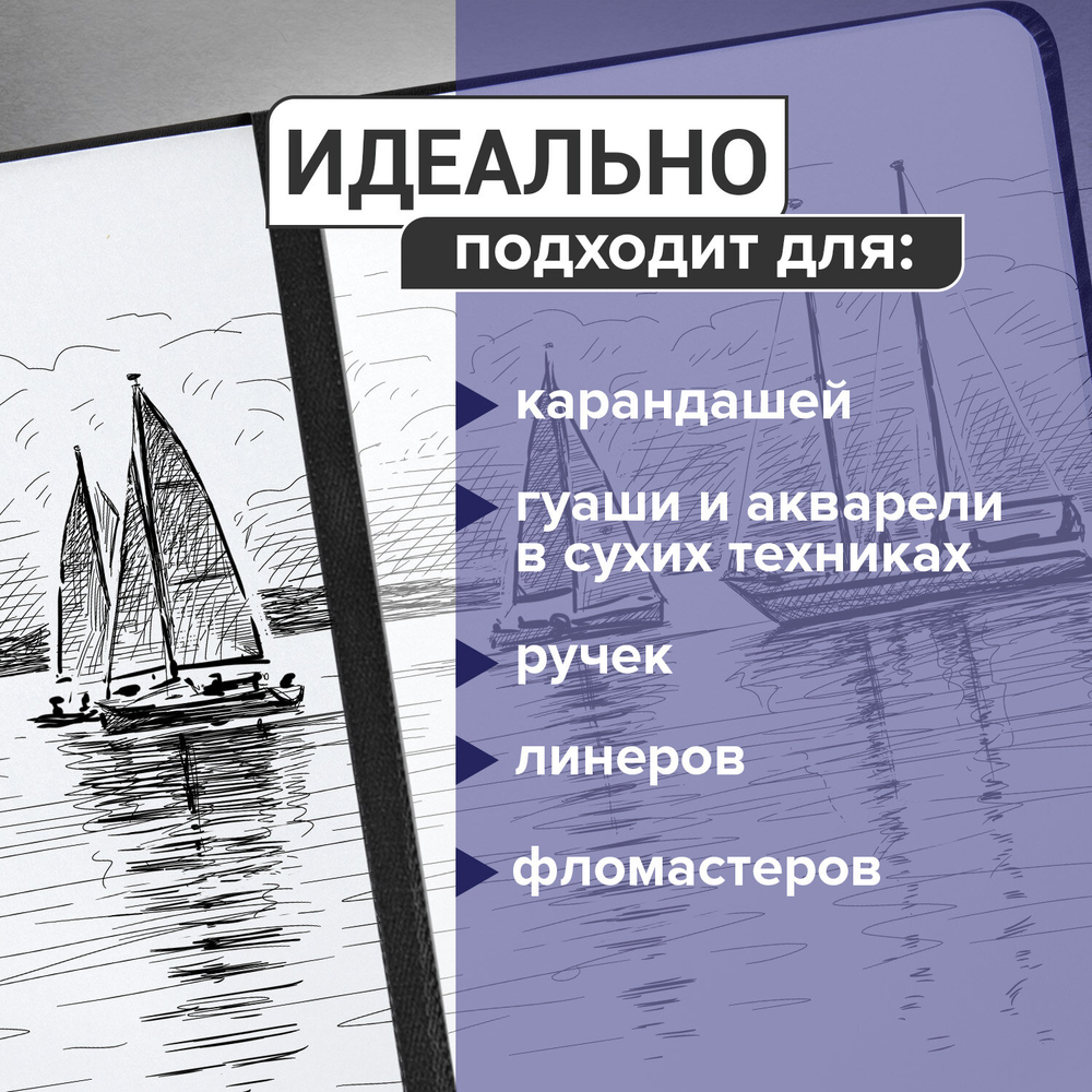 Благодаря компактному формату его можно носить с собой, а жесткая обложка станет верным подспорьем для рисования на весу. Дополнением является закладка-ляссе, с помощью которой при необходимости можно быстро открыть скетчбук на нужной странице, а эластичная резинка надежно сбережет листы от замятия и случайного раскрытия. Скетчбук станет прекрасным выбором для любителей и профессионалов, студентов и школьников, художников и дизайнеров.