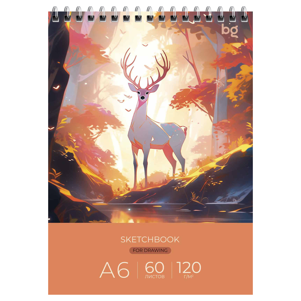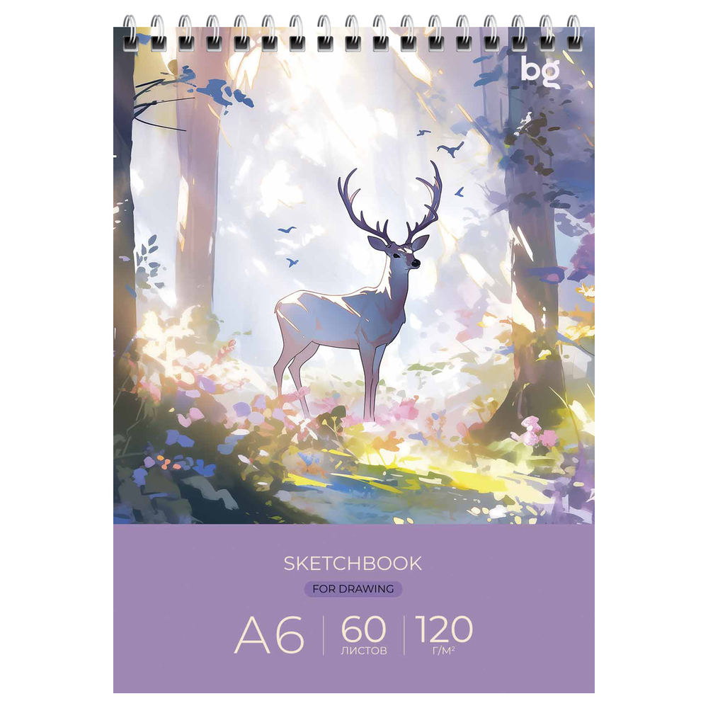 Скетчбук для зарисовок "Сказочный олень" состоит из 60 листов бумаги белого цвета плотностью 120 г/м2. Блокнот формата А6 (100х145 мм) удобно взять с собой. Листы скреплены спиралью по левому краю, что позволяет переворачивать их как на 180, так и на 360 градусов. При необходимости легко отделить лист.