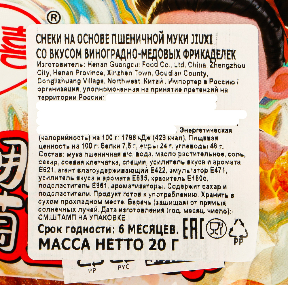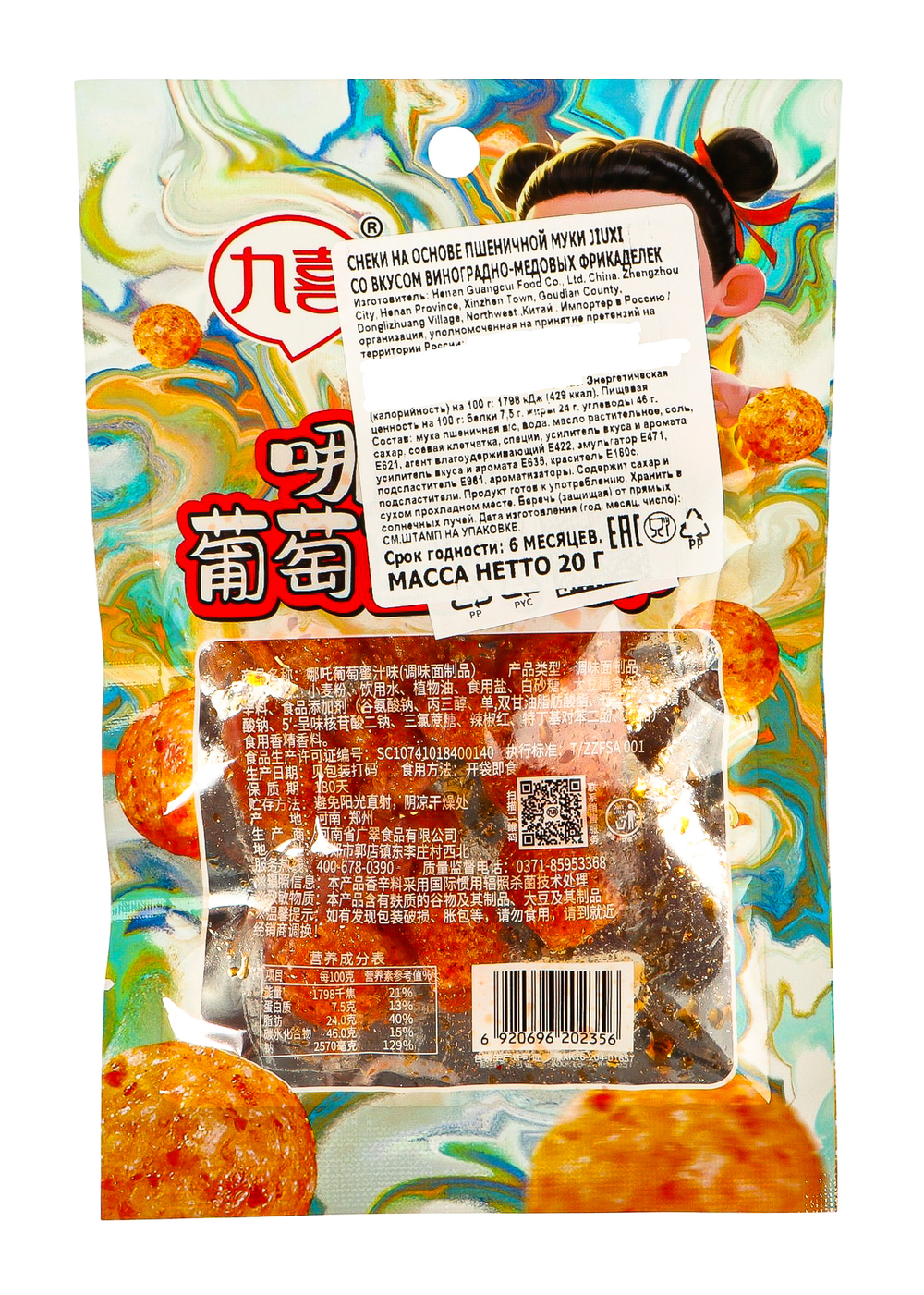 Снеки на основе пшеничной муки Jiuxi со вкусом виноградно-медовых фрикаделек.