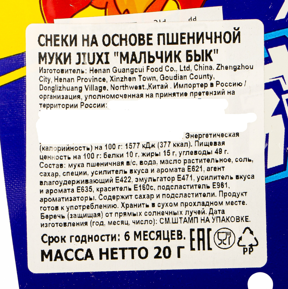 Снеки на основе пшеничной муки Jiuxi.