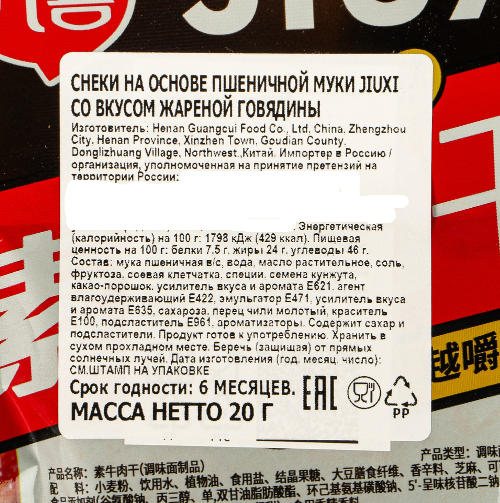 Снек "Jiuxi со вкусом жареной говядины" (20 г)