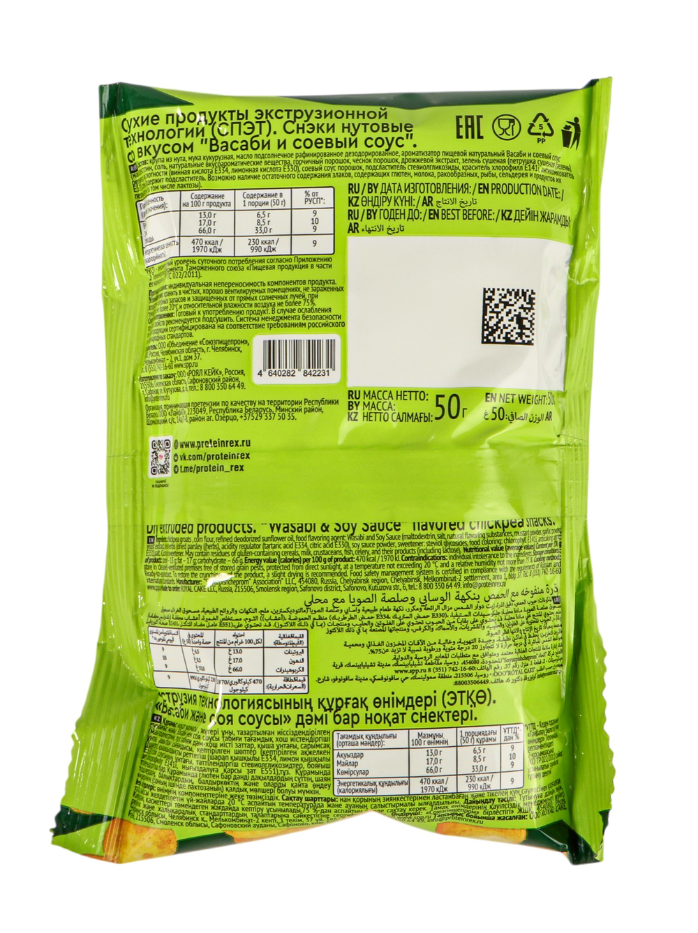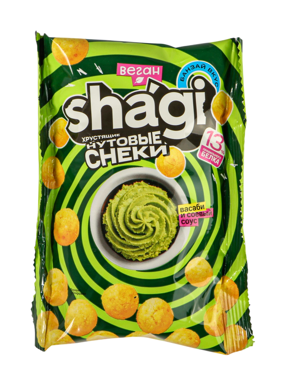 В каждой пачке 13% белка! Идеальны в качестве здорового перекуса в любой ситуации. Нутовые снеки со вкусом Васаби и соевого соуса: лучшее из азиатской кухни! Островатая свежесть васаби и насыщенный вкус соевого соуса.