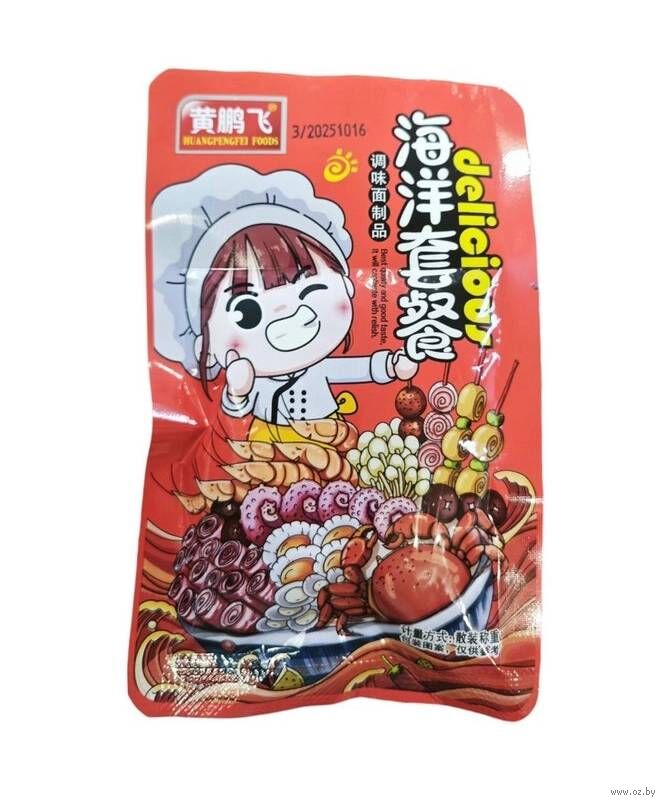 Пшеничная мука, питьевая вода, пищевое соевое масло, пищевая соль, перец чили, белый сахар, соевые пищевые волокна в порошке, специи, пищевые добавки (глутамат натрия, лактриол, моно- и диглицеридные эфиры жирных кислот, нуклеотид со вкусом динатрия 5’, капсаицин, красный дрожжевой рис, красный дрожжевой рис желтый), пищевые ароматизаторы и отдушки.