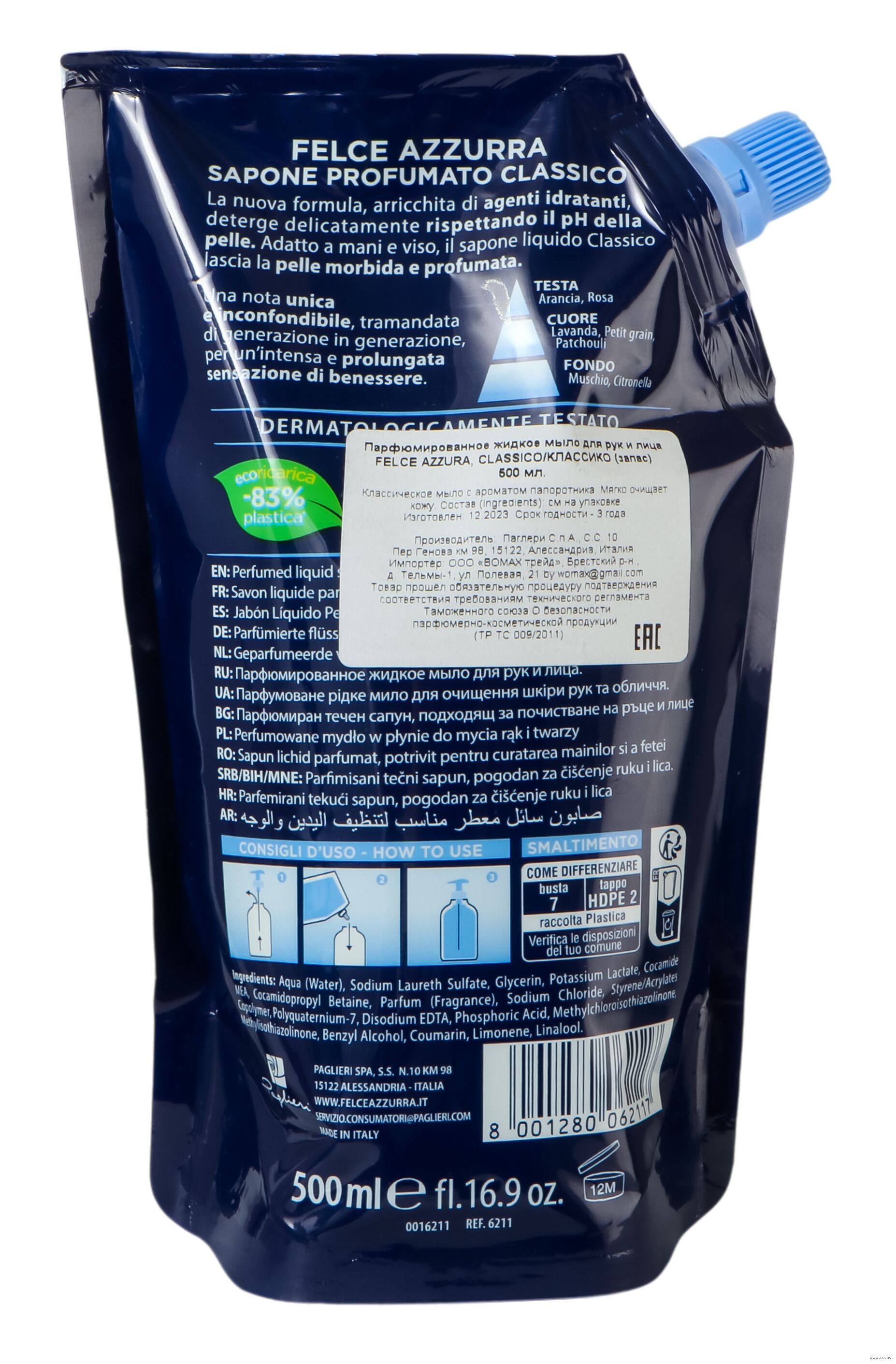 Благодаря новой эксклюзивной увлажняющей формуле жидкое мыло Felce Azzurra нежно очищает кожу, поддерживая естественный баланс. Подходит для рук и лица.