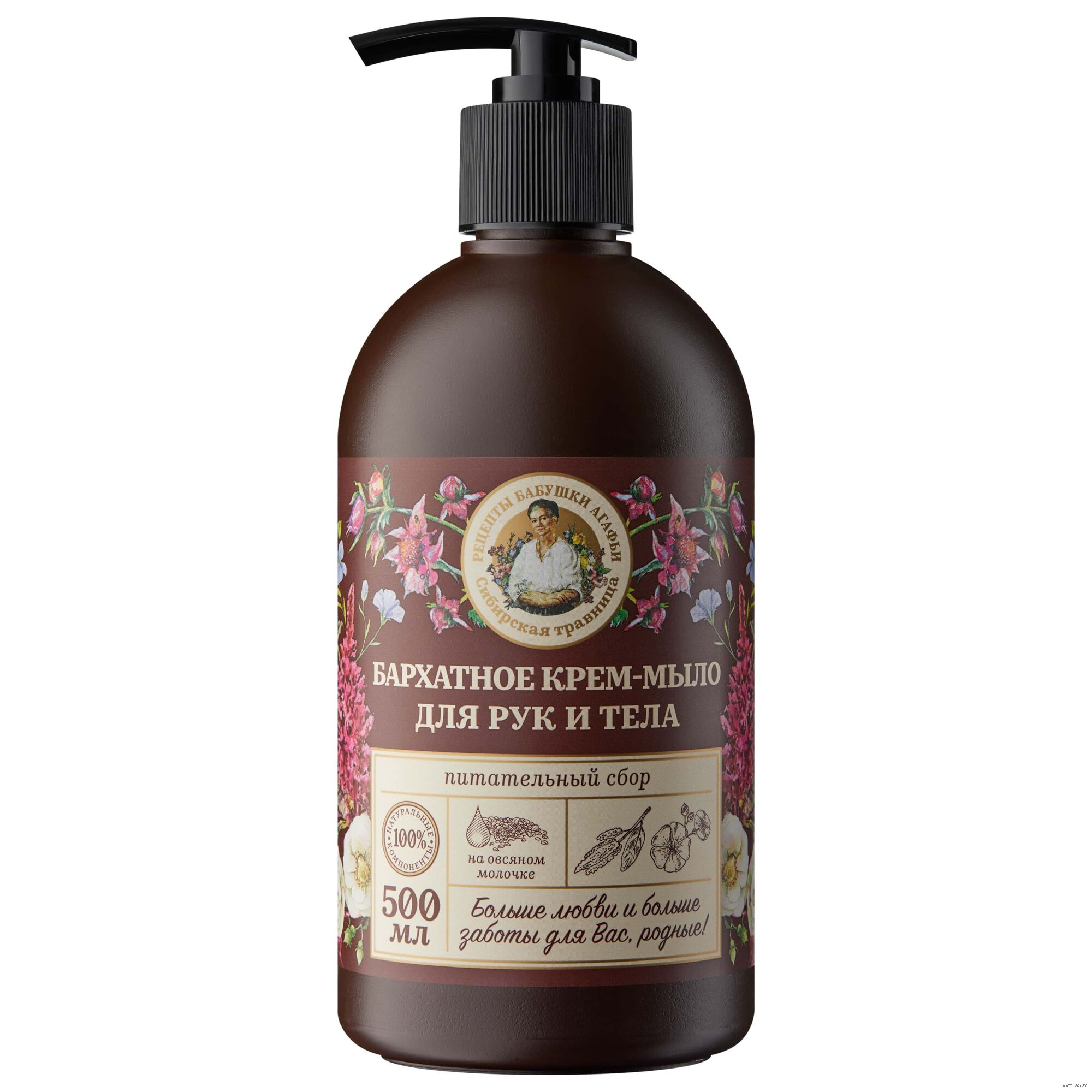 Крем-мыло для рук и тела на овсяном молочке глубоко питает и смягчает кожу, защищает от неблагоприятного воздействия внешних факторов, дарит ухоженный вид вашим рукам. Амарантовое масло поддерживает гидролипидный барьер и повышает эластичность и упругость кожи. Льняное молочко балует ваши ручки витаминами и микроэлементами, замечательно увлажняет, придаёт бархатистую гладкость и нежность. Экстракт сабельника сибирского выработку коллагена стимулирует, удерживает в коже влагу, ограничивает действие свободных радикалов, улучшает снабжение клеток кислородом. Масло дикой розы глубоко питает кожу рук, стимулирует обновление клеток, повышает упругость и эластичность. Экстракт амурского бархата и медуницы содержит дубильные вещества, витамин С и никотиновую кислоту, которые оказывают противовоспалительное действие на кожу.