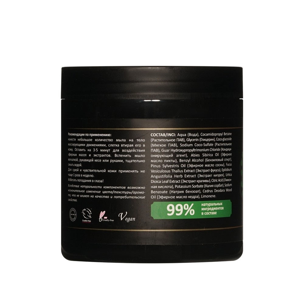 Натуральное мягкое густое мыло с добавлением эфирных масел хвойных деревьев идеально для эффективного очищения и деликатного ухода за кожей.