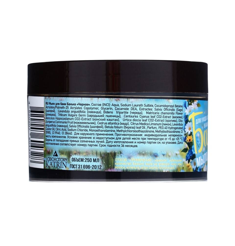 Мыло "Банька. Черное" создано для полноценного банного ритуала очищающего, расслабляющего и восстанавливающего. Его густая консистенция, насыщенный натуральный состав и тонкий аромат луговых цветов делают уход за телом не просто процедурой, а особым моментом уединения и заботы о себе.