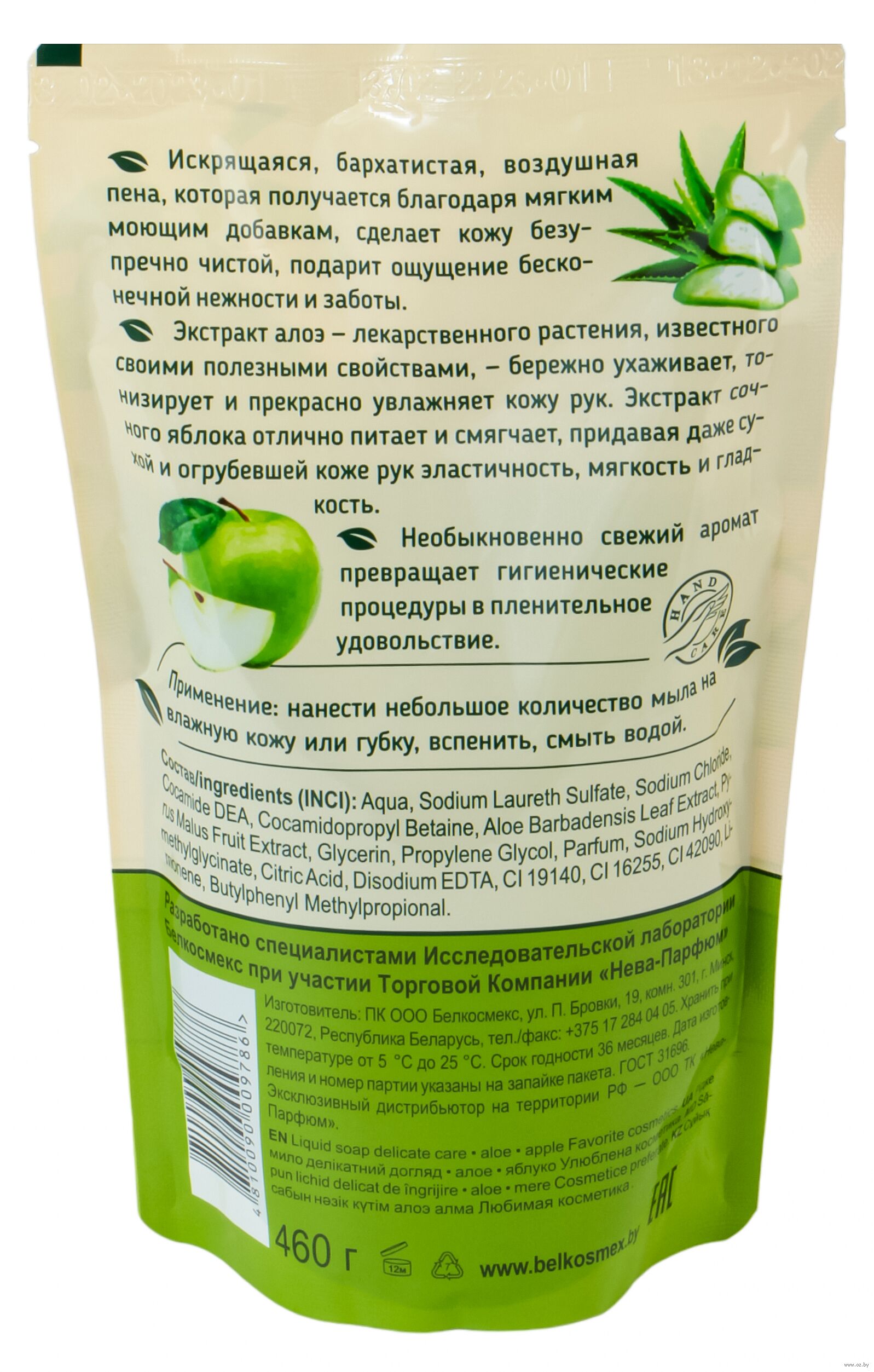 Нанести небольшое количество мыла на влажную кожу или мочалку, вспенить, смыть теплой водой.Состав