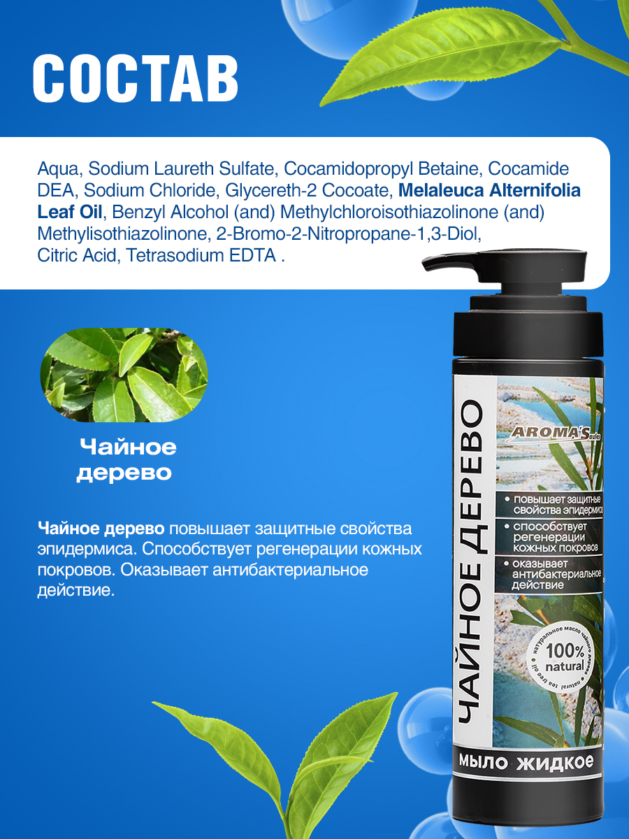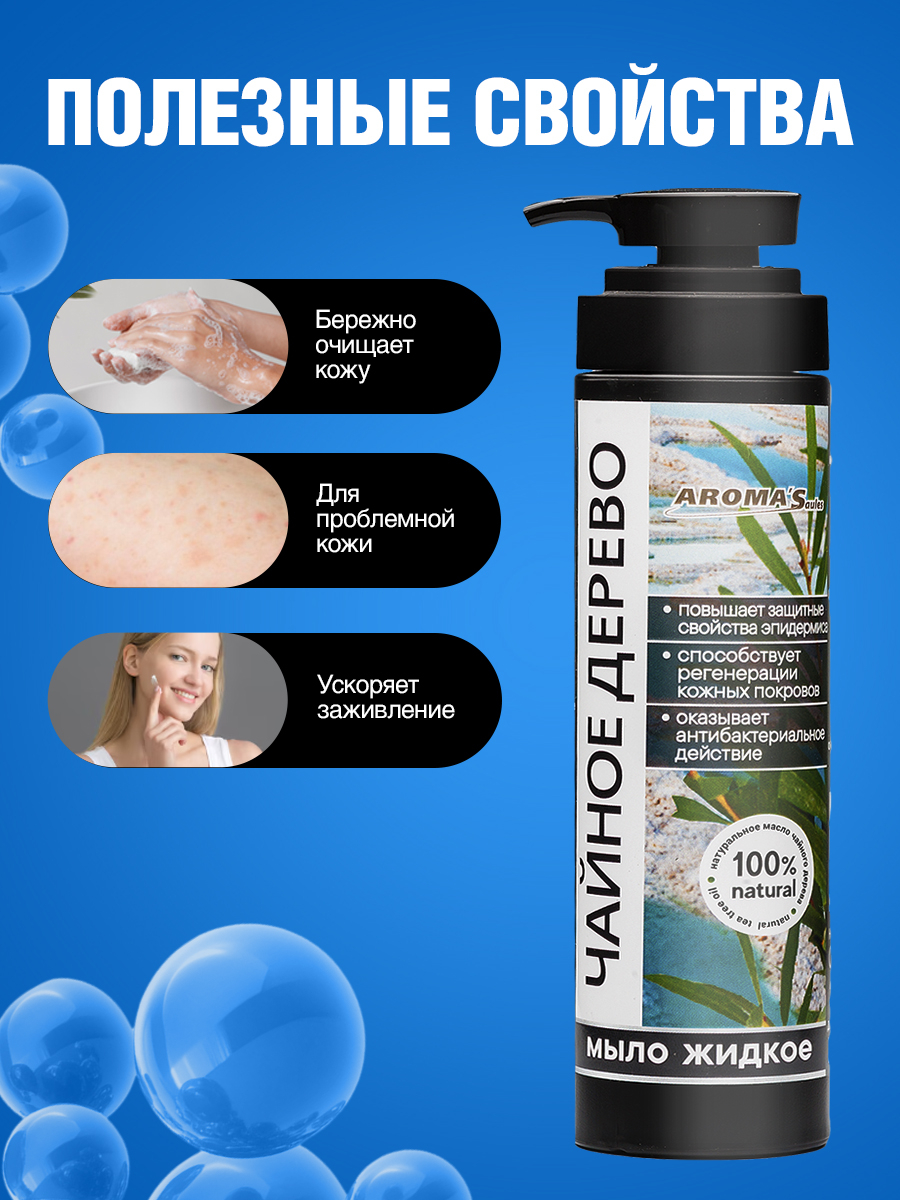 Жидкое мыло «Чайное дерево» повышает защитные свойства эпидермиса. Способствует регенерации кожных покровов. Оказывает антибактериальное действие.