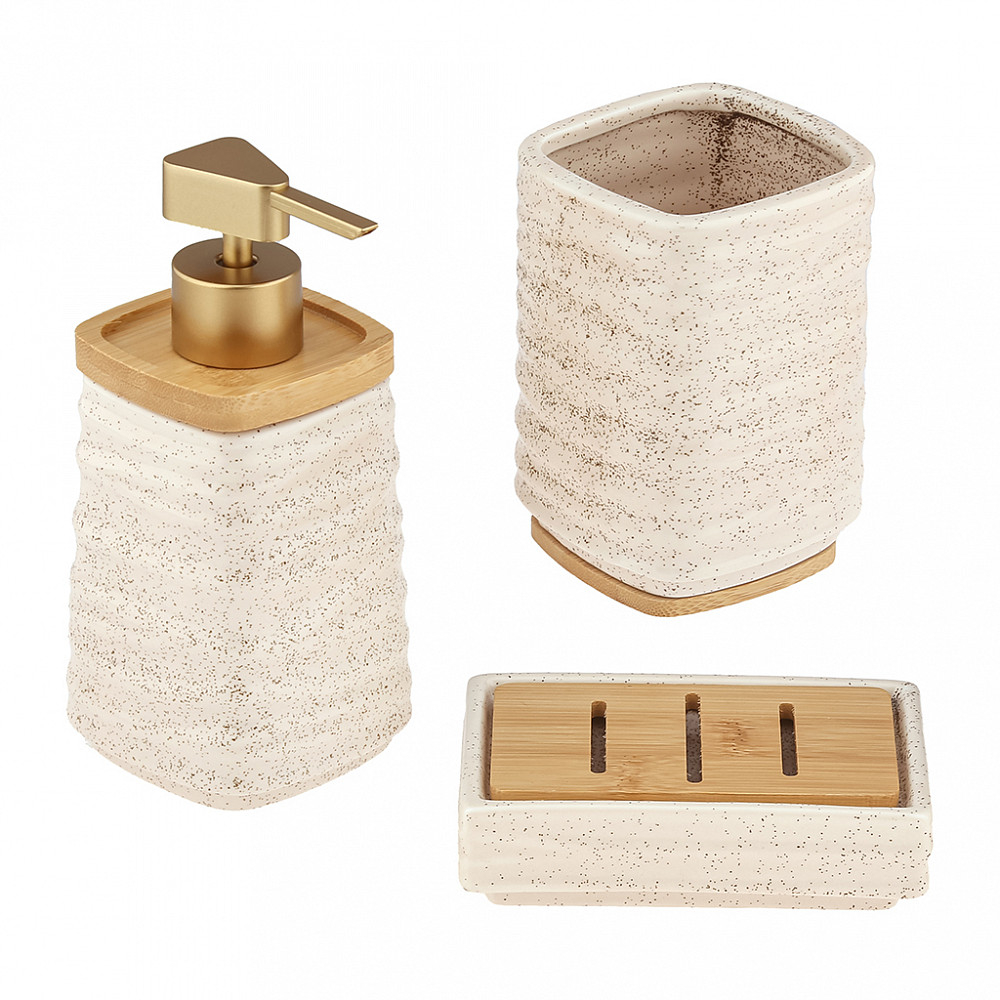 Набор для ванной комнаты "Бамбук" (3 предмета; кремовый меланж)