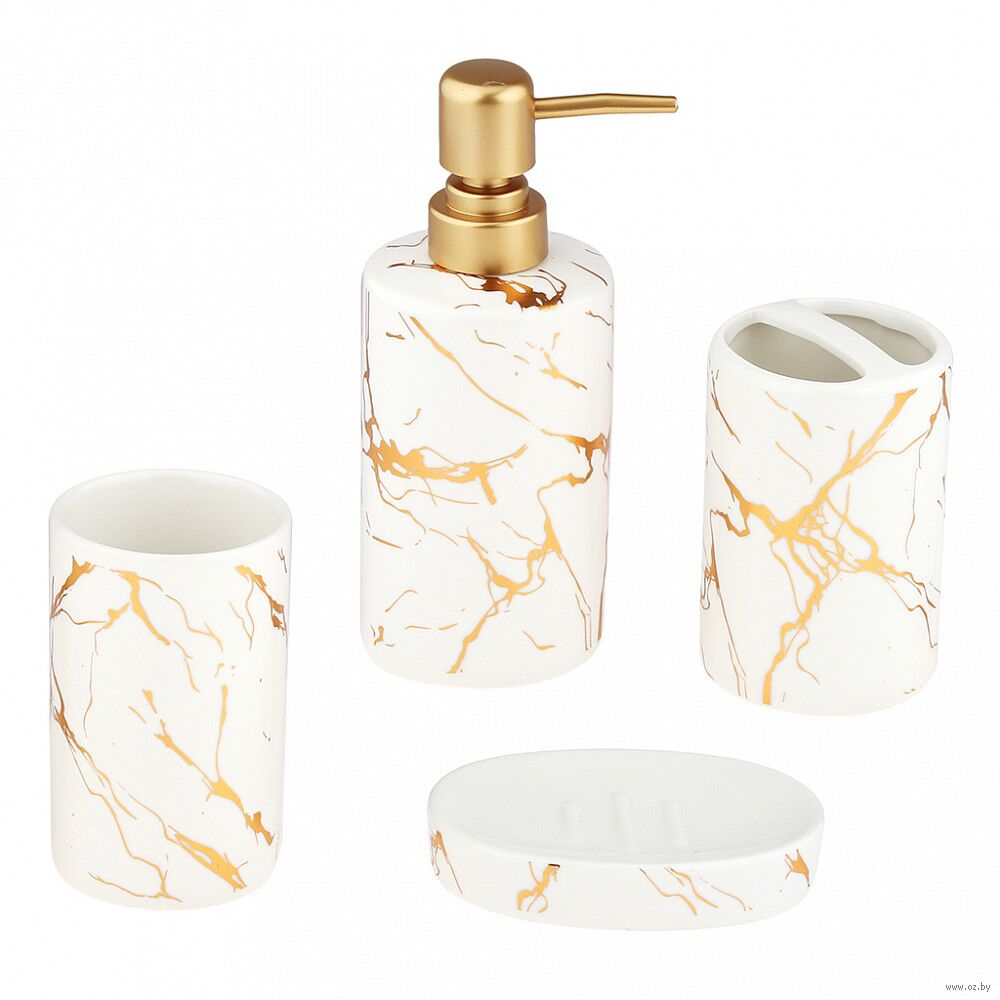 Набор для ванной комнаты "Мрамор" (4 предмета; белый)