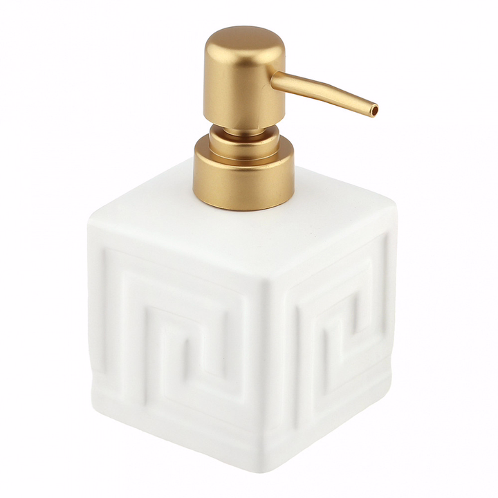 Дозатор для жидкого мыла из полимерного композита "Греция", фурнитура пластик "под золото", глянцевая глазурь.
