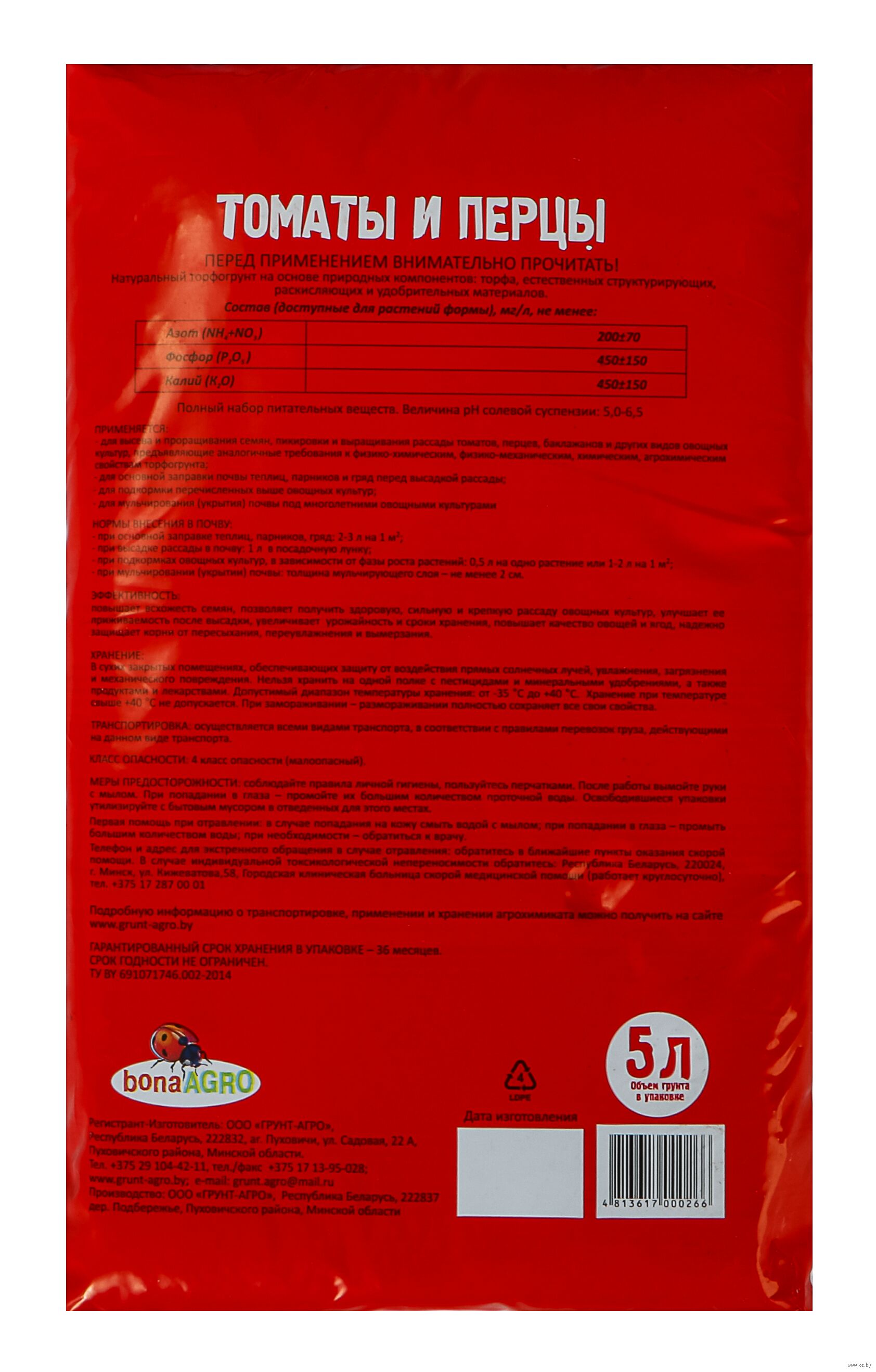 | Изготовитель | ООО "Грунт-Агро" ,Минская обл., Пуховичский р-н, дер. Подбережье |