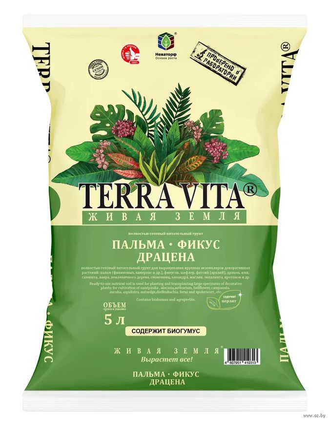 Полностью готовый питательный для выращивания всех видов пальм (финиковых, хамеропс и др.), фикусов, шефлер, фатсий (аралий), драцен, юкк, самшита, лавра, земляничного дерева, смоковниц, олеандра, маслин, эвкалипта, кротонов и других декоративно-лиственных растений.
