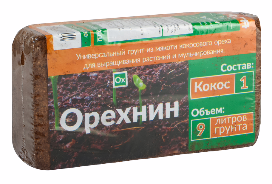Орехнин – это экологически чистый материал, предназначенный для обогащения почвы и выращивания растений. Сделан из 100% натуральной мякоти кокосового ореха. В отличии от торфа он не содержит вредных микроорганизмов, тяжелых элементов и вредных веществ.