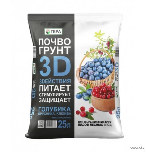 Почвогрунт 3D для Голубики, брусники и клюквы, 25 л это готовый к применению грунт, который можно использовать без разбавления для выращивания голубики, брусники, клюквы, черники, жимолости голубой и других культур с аналогичными требованиями к грунту.