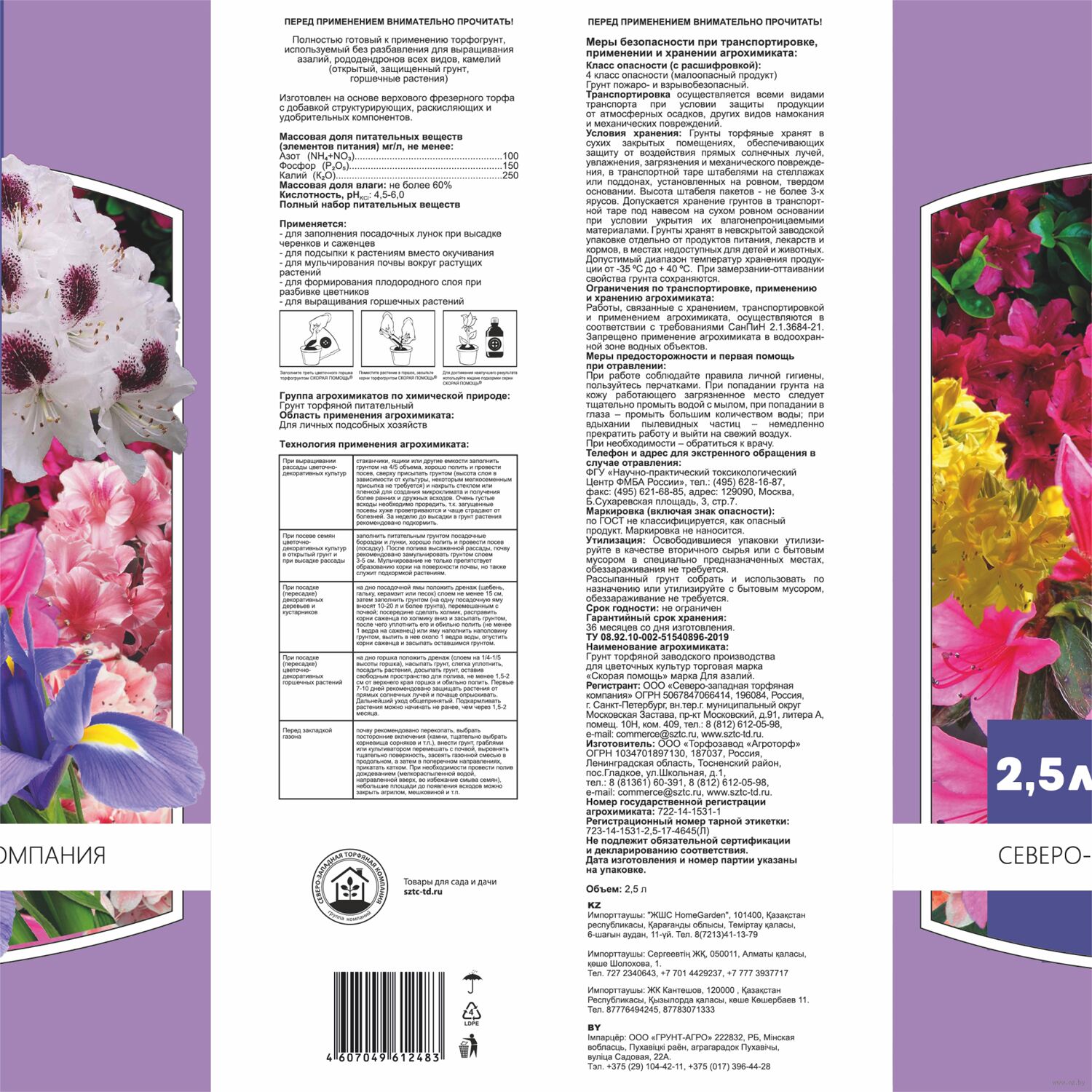 Полностью готовый субстрат для азалий, гортензий, ирисов, филодендронов, папоротников, антуриумов, портулаков, наперстянок и рододендронов. Используется без разбавления.