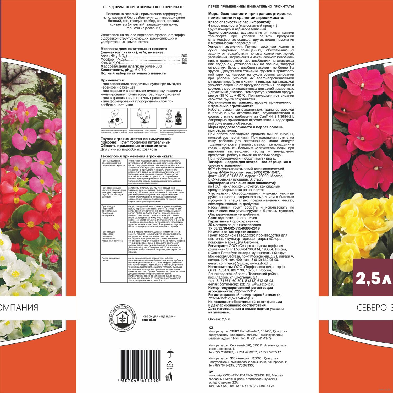 Полностью готовый торфогрунт, используемый без разбавления, для выращивания в открытом, защищенном грунте, а также в горшках бегоний, роз, гвоздик, гербер, калл, фрезий, хризантем.