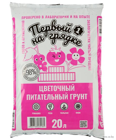 Натуральный, высококачественный, питательный, цветочный почвогрунт ''Первый на грядке'' полностью готов для выращивания цветочной рассады и укоренения черенков всех видов садовых, цветочных, декоративных культур, а также для комнатных растений. Экологически чистый.