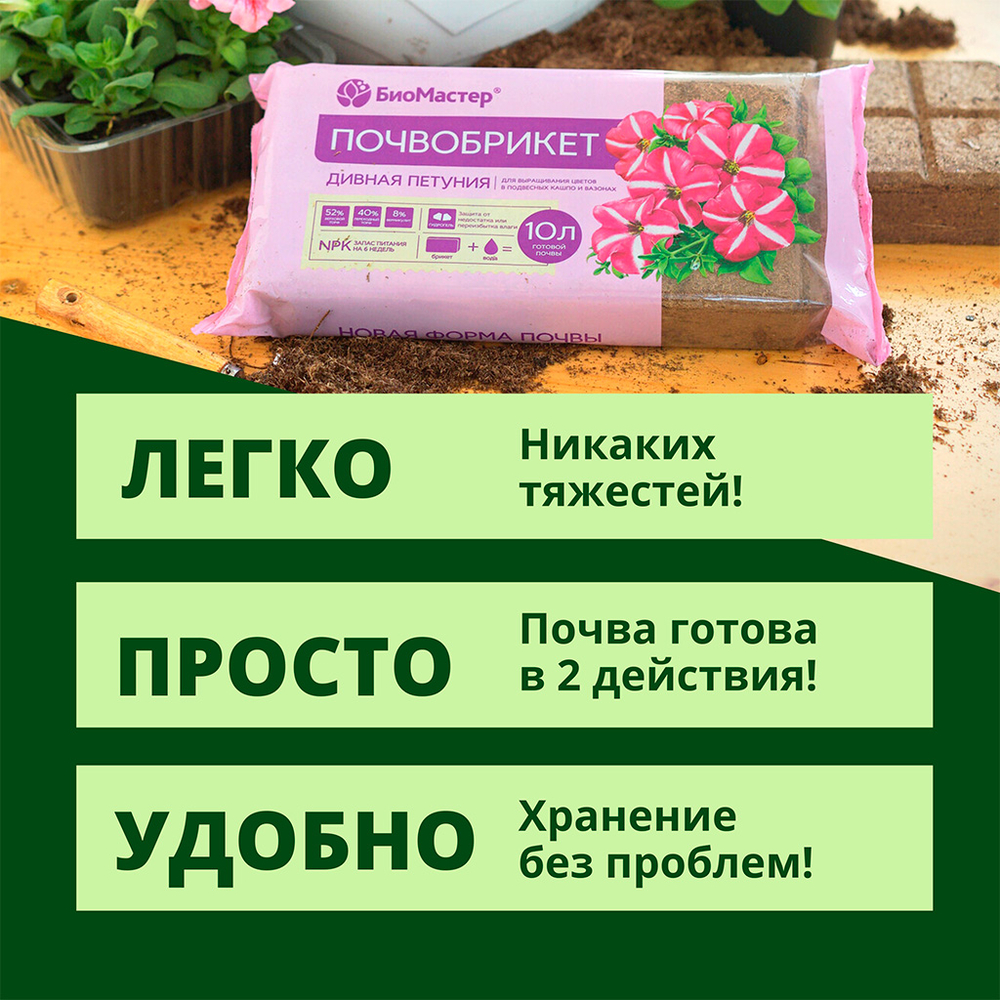 Петунии свешиваются с корзин красочными каскадами и покрывают разноцветной мозаикой клумбы с начала лета до самой осени. Это настоящее буйство красок и форм! Выращивайте петунии легко и просто с почвобрикетом "Дивная петуния".