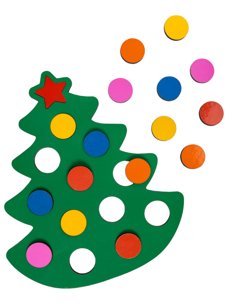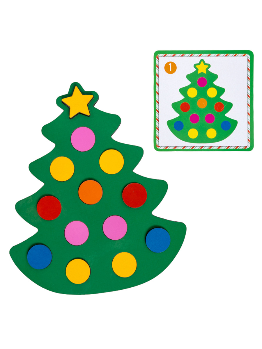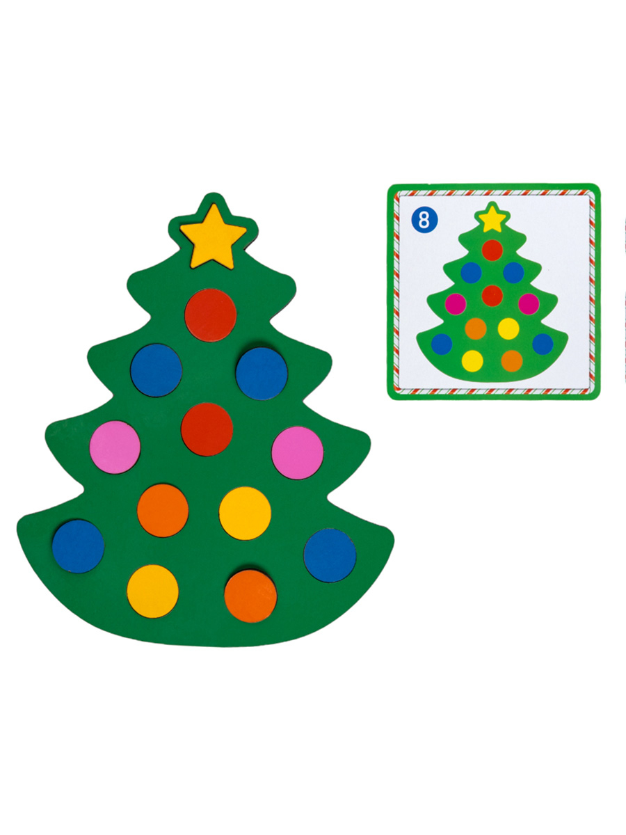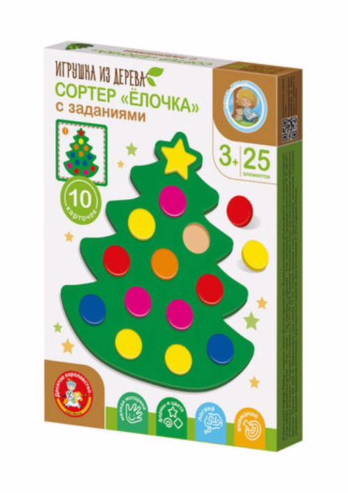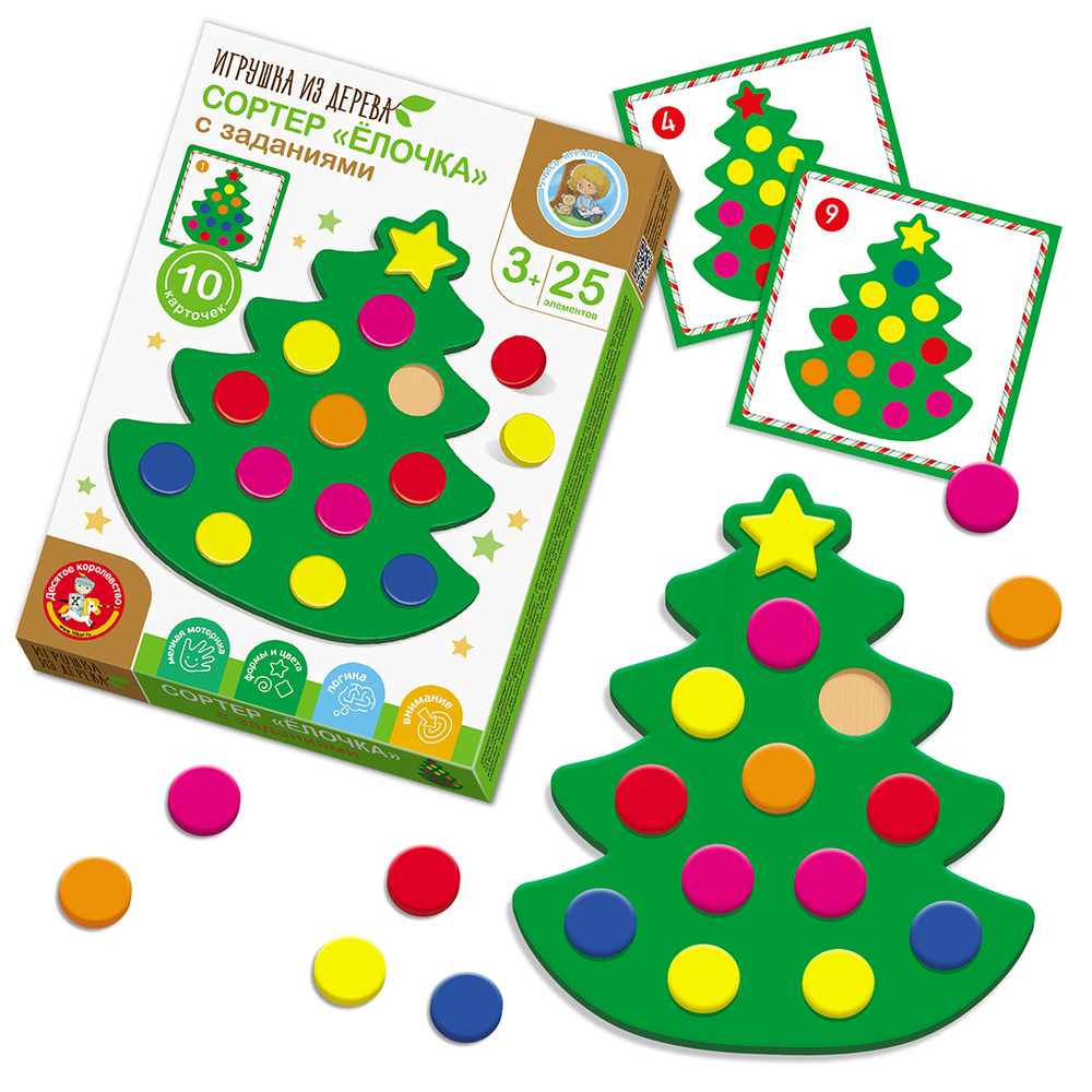 В составе развивающей игры для детей "Ёлочка" есть карточки с заданиями.