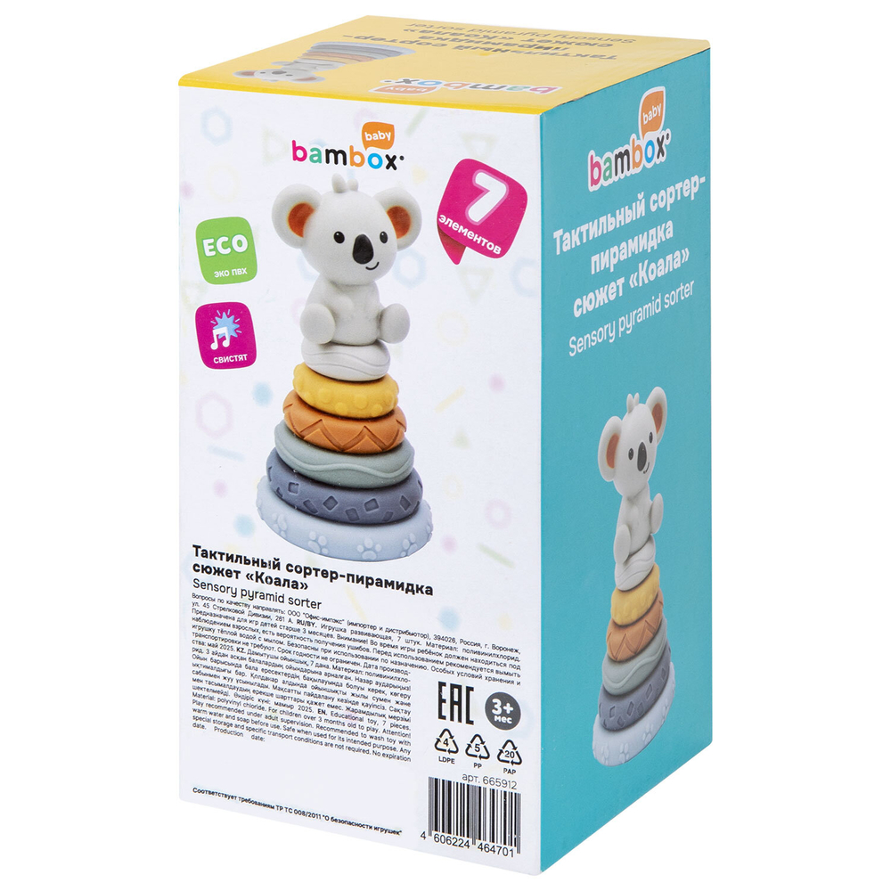 Тактильная игрушка-сортер "Коала" в пастельных оттенках – замечательный подарок для малыша! Пирамидка выполнена из безопасного ПВХ, все детали приятные на ощупь.