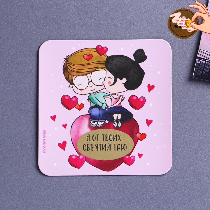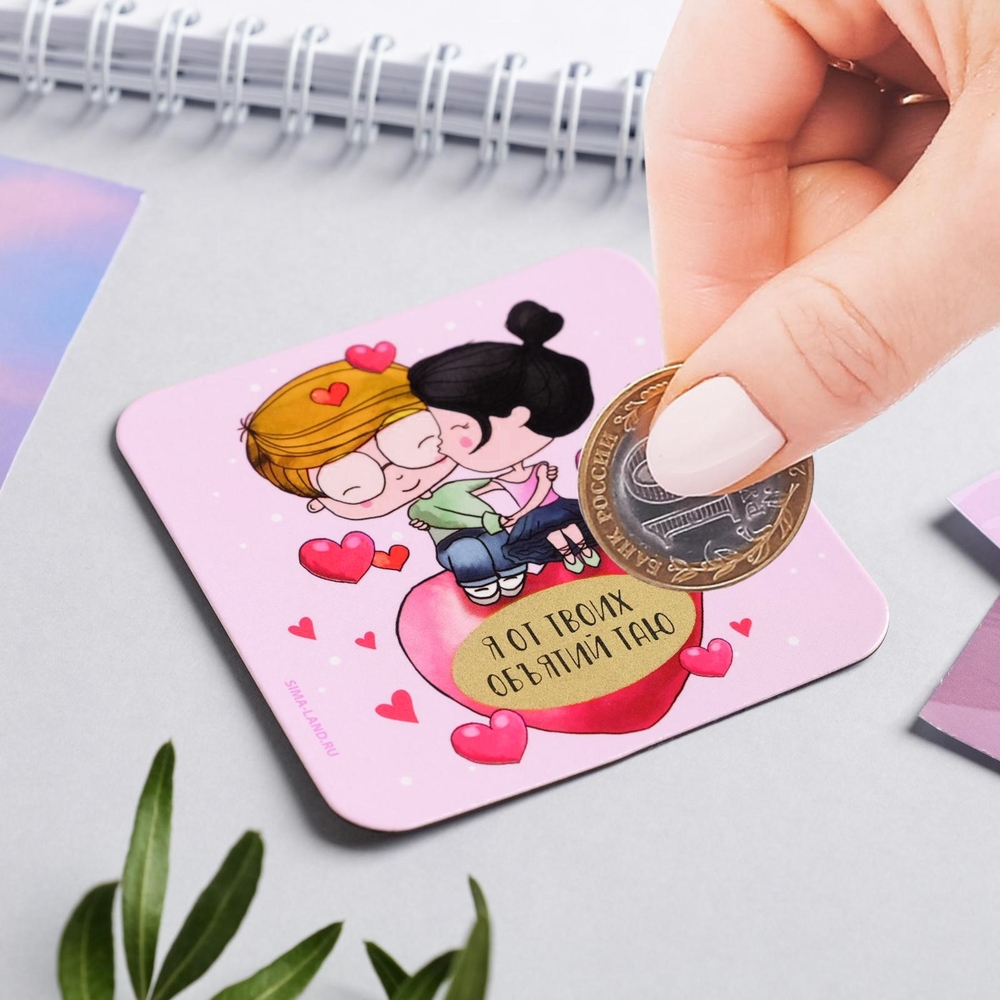 Милый магнитик, который порадует твою вторую половинку. Под скретч-слоем находится надпись: "В них тону и пропадаю".