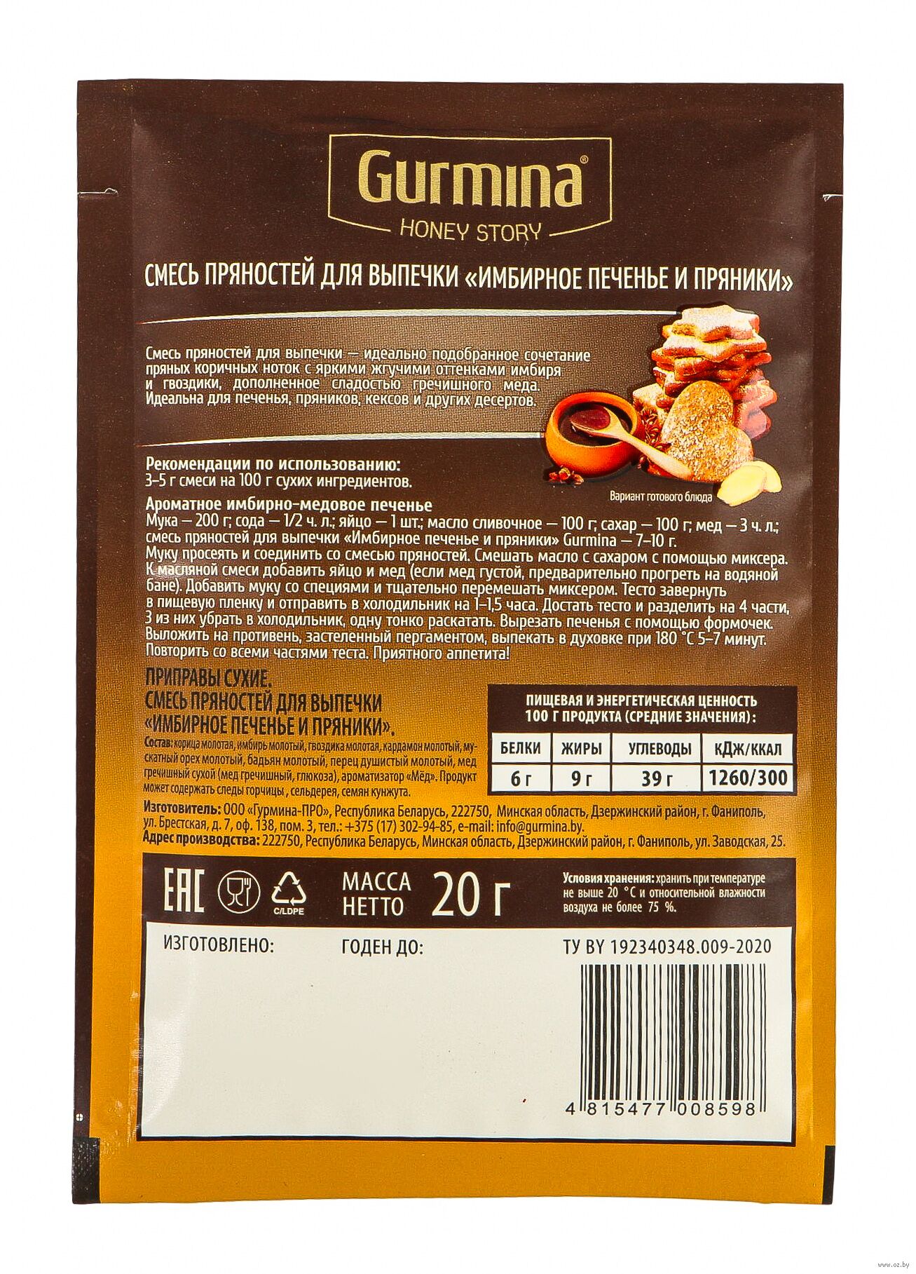 | Изготовитель | ООО "Гурмина", 220020, Беларусь, г. Минск, ул. Казинца, 92/1, пом. 15 |