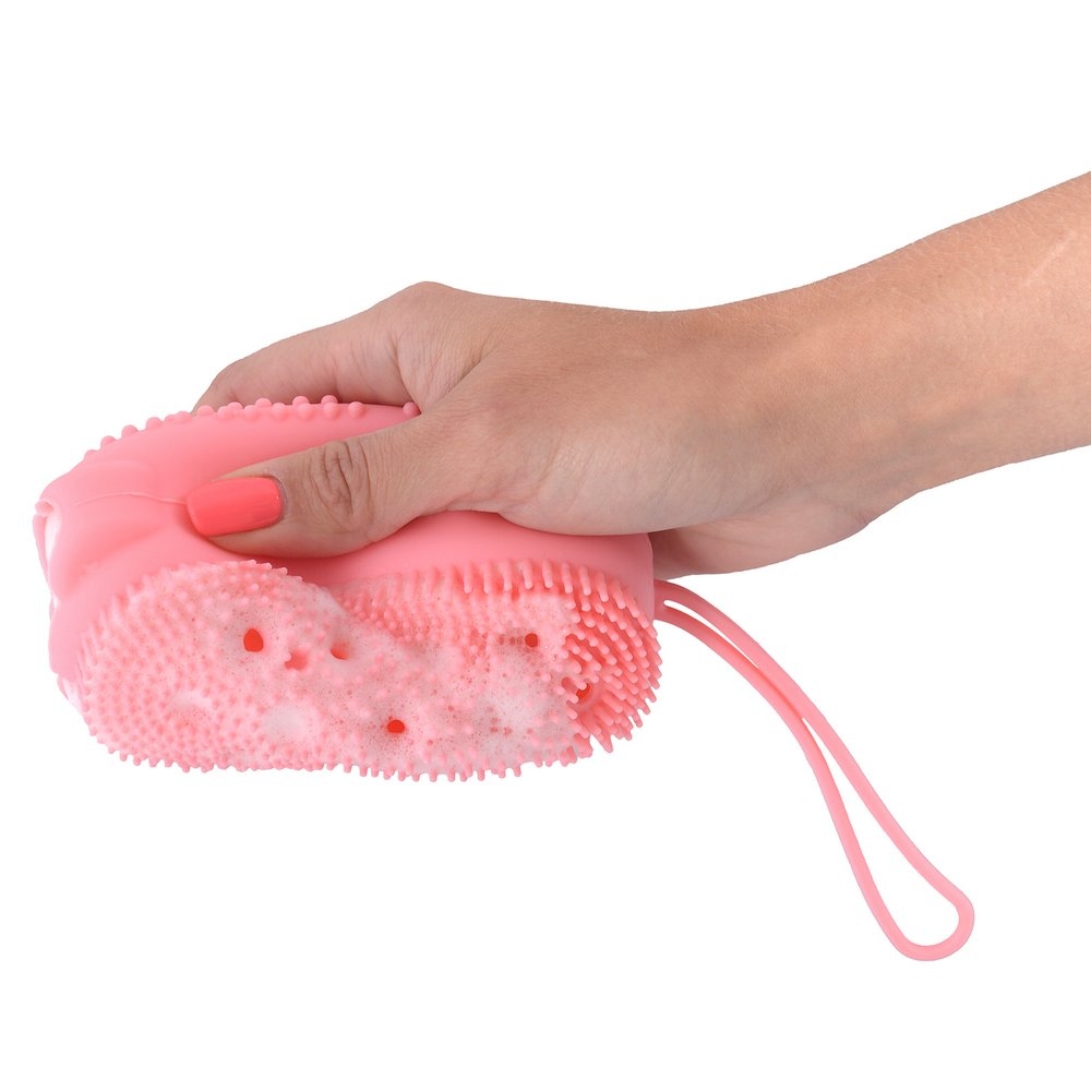 Силиконовая щетка с губкой внутри предназначена для принятия ванны или душа.