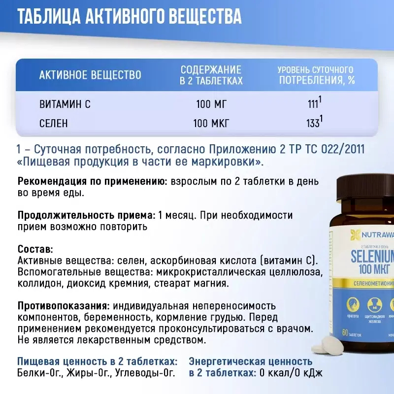 Активные вещества: селен, аскорбиновая кислота (витамин С).Способ приготовления