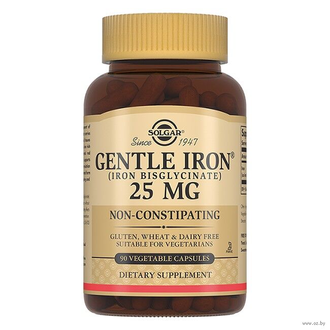 "Легкодоступное железо" от Solgar содержит железо в форме бисглицината, которое в организме абсорбируется, не вызывая запор.