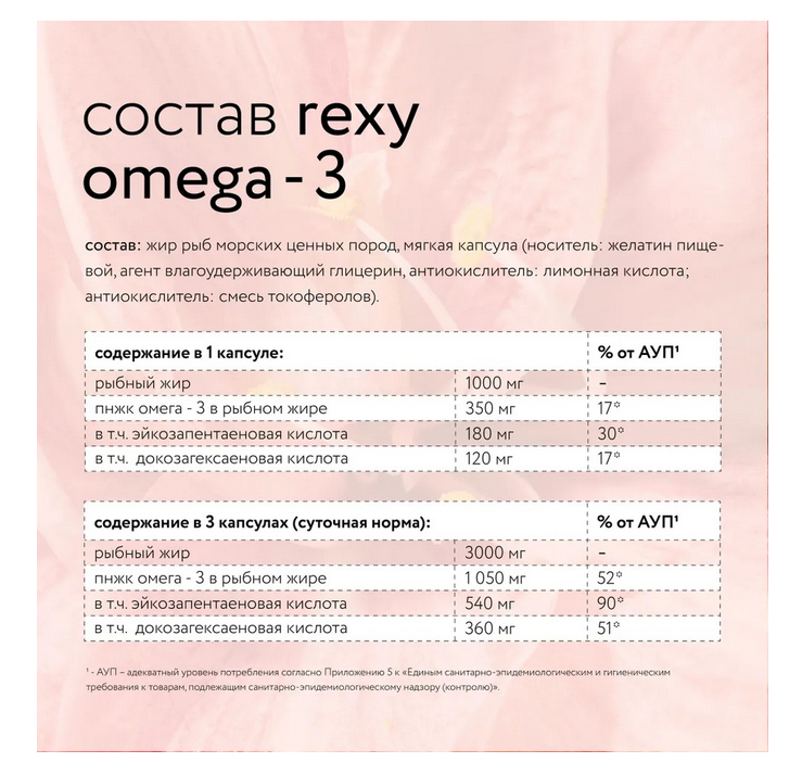 Каждая капсула Omega 3 содержит высокие дозировки важных активных веществ, которые способствуют укреплению иммунитета, здоровью суставов, крепким сосудам и общему поддержанию организма в тонусе. Продукт содержит высококачественный натуральный рыбный жир.