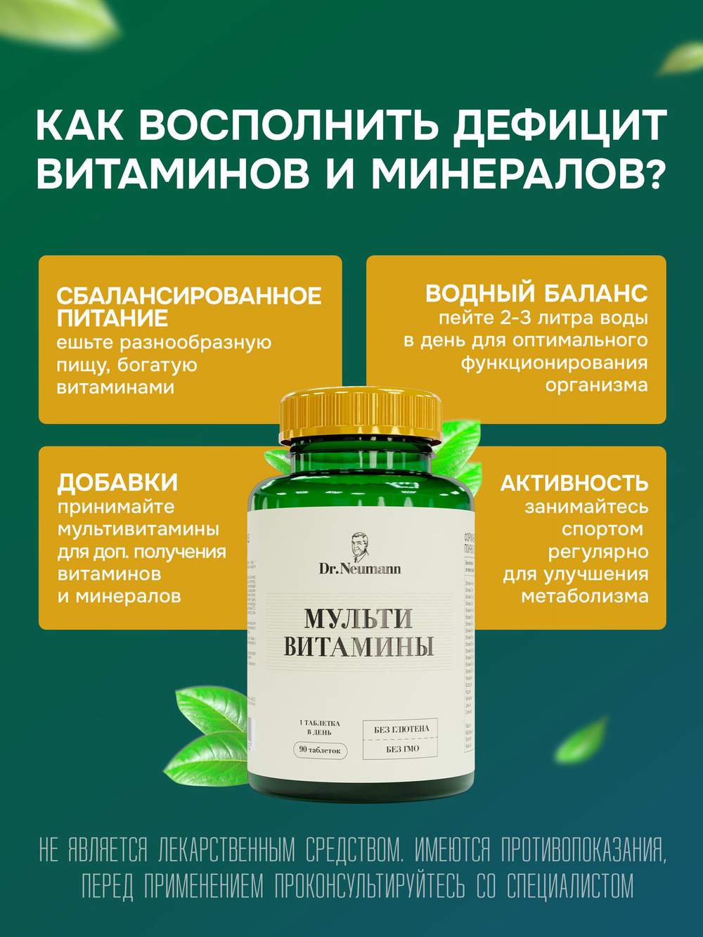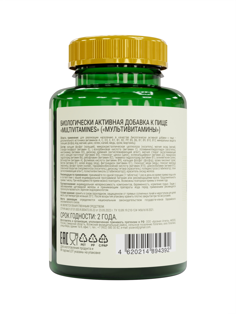 "Multivitamines" полноценный комплекс, который содержит витамины и минералы в нужной дозировке для взрослого организма. Достаточное поступление витаминов и минералов в организм жизненно необходимо для правильного функционирования органов и поддержки энергетического уровня человека. Комплекс будет полезен для здоровья глаз, костей, сердца и сосудов, обмена веществ, иммунной защиты, красоты кожи и волос, повышения уровня антиоксиданта для сохранения молодости организма. Кроме того, содержание смеси высокоэффективных пищеварительных ферментов помогают поддерживать здоровое пищеварение и ускоряют обмен веществ.