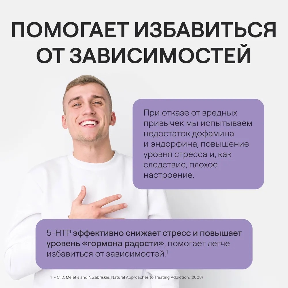 5-HTP, как пищевая добавка, обеспечивает необходимую энергию и спокойствие, заменяет успокоительное от стресса, сильные антидепрессанты и снотворное сильное, повышает уровень мелатонина.