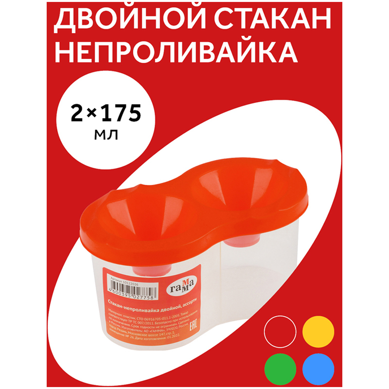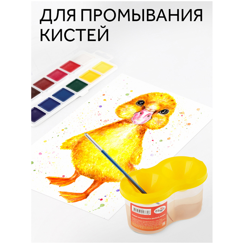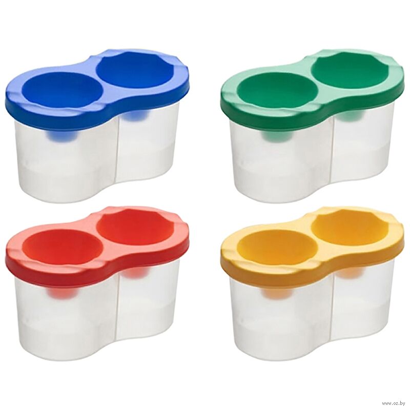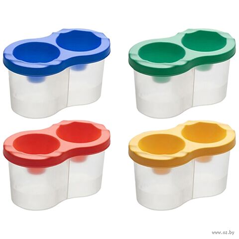 Двойной стакан-непроливайка предназначен для промывания кистей в процессе рисования. Стакан изготовлен из полипропилена и представлен в объёме 2х175 мл. Специальная линия – метка безопасного уровня воды, которая указывает на оптимальный уровень наполнения стакана водой.