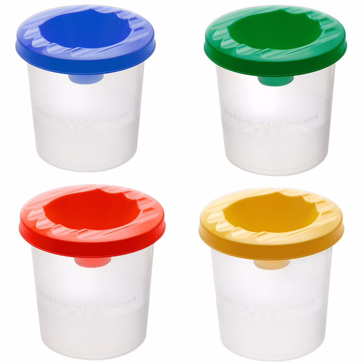 Стакан-непроливайка предназначен для промывания кистей в процессе рисования.