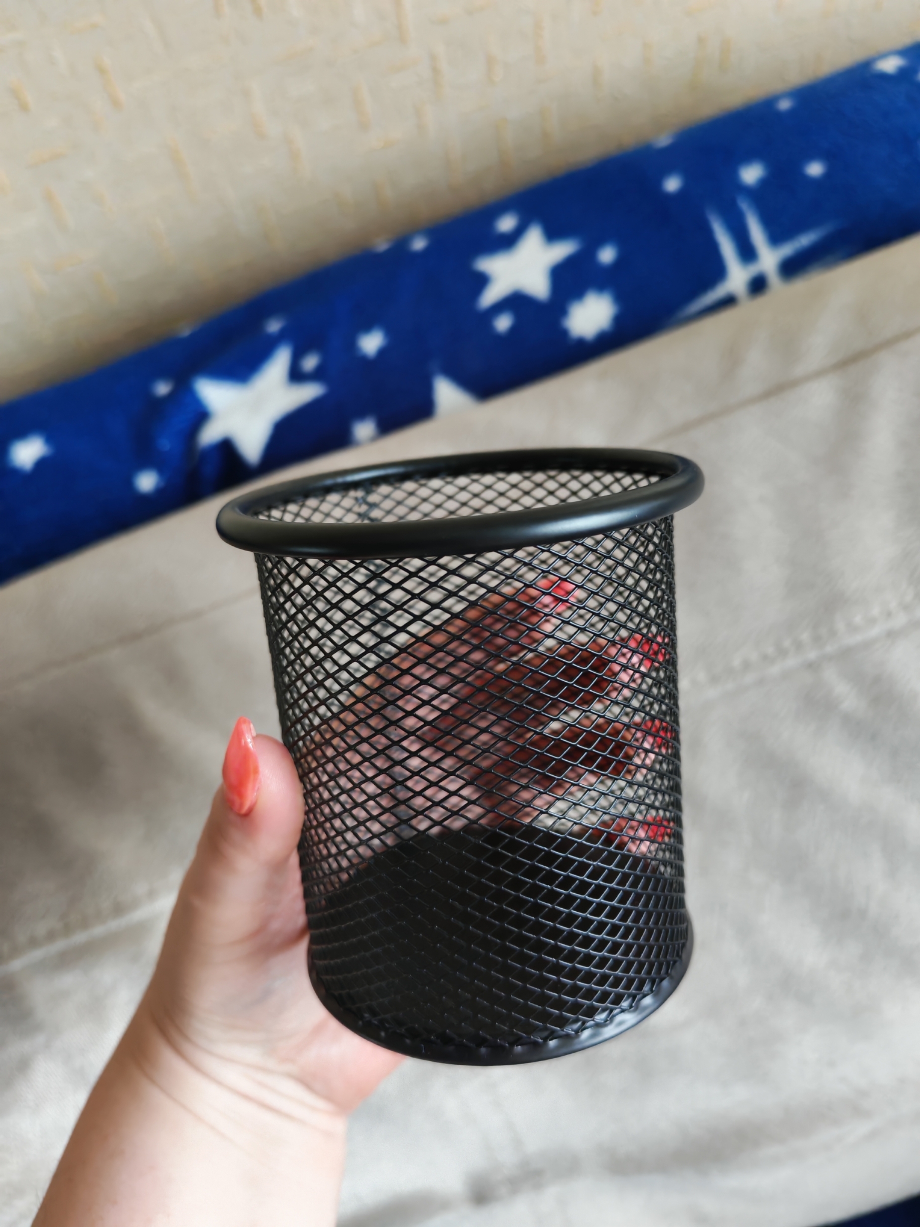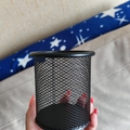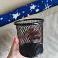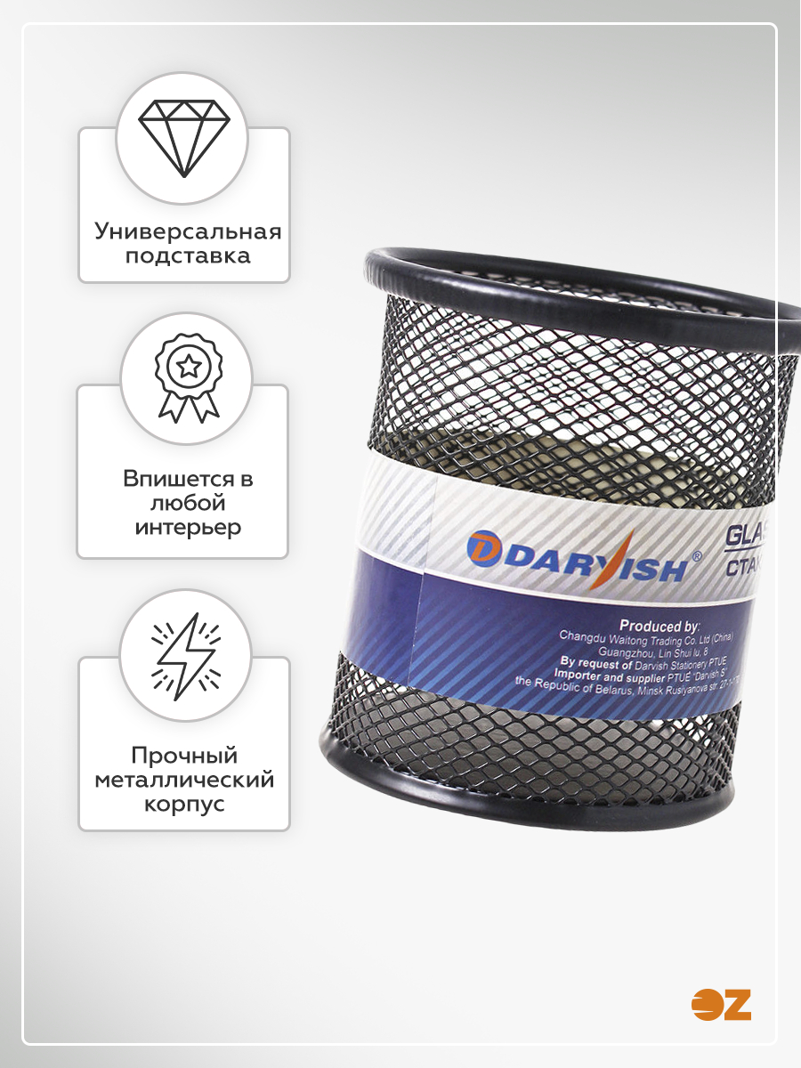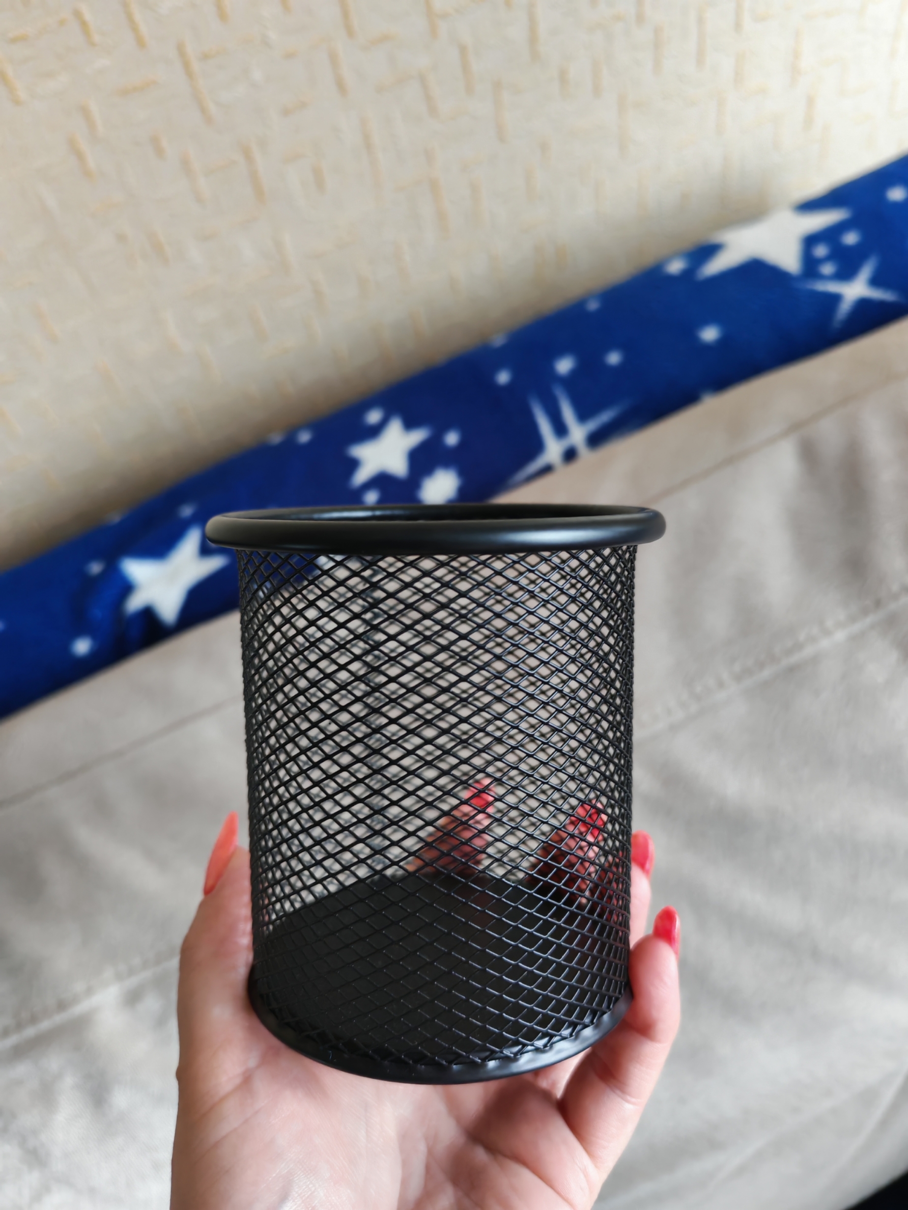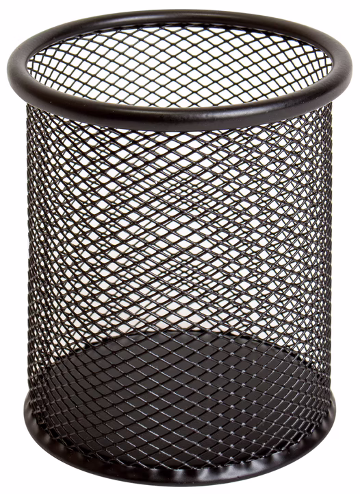Металлический стакан для канцелярских принадлежностей с круглым основанием. Отлично подходит для хранения ручек, карандашей и прочих мелочей.