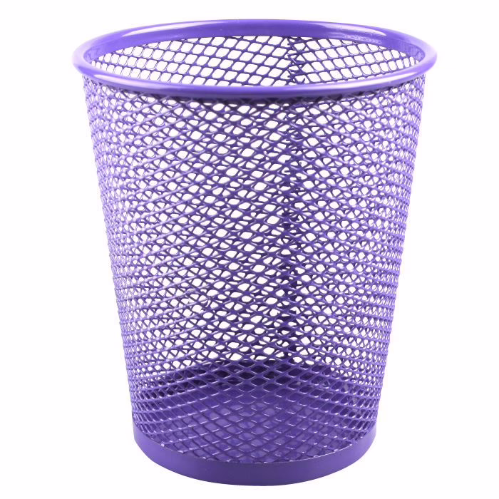 Яркий металлический стакан для канцелярских принадлежностей с круглым основанием. Отлично подходит для хранения ручек, карандашей и прочих мелочей.