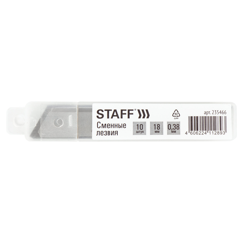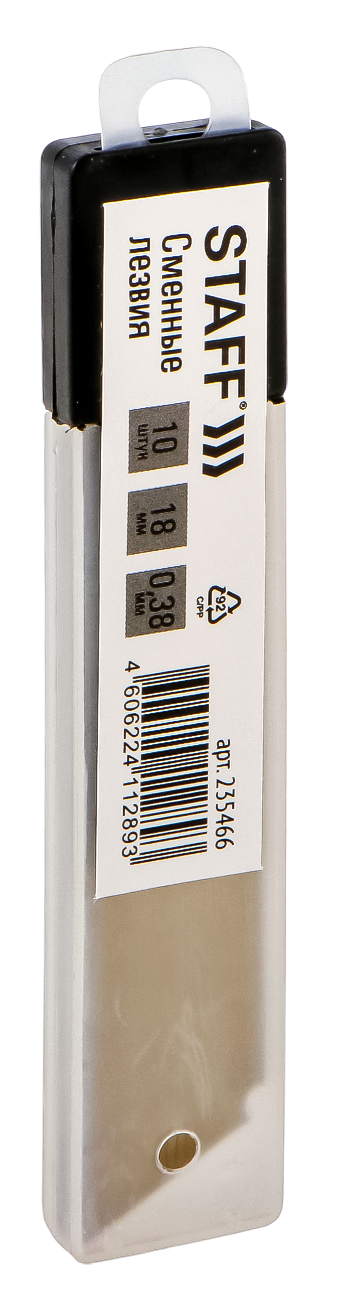 Ширина лезвий – 18 мм, толщина – 0,38 мм. Поставляются в пластиковом пенале.
