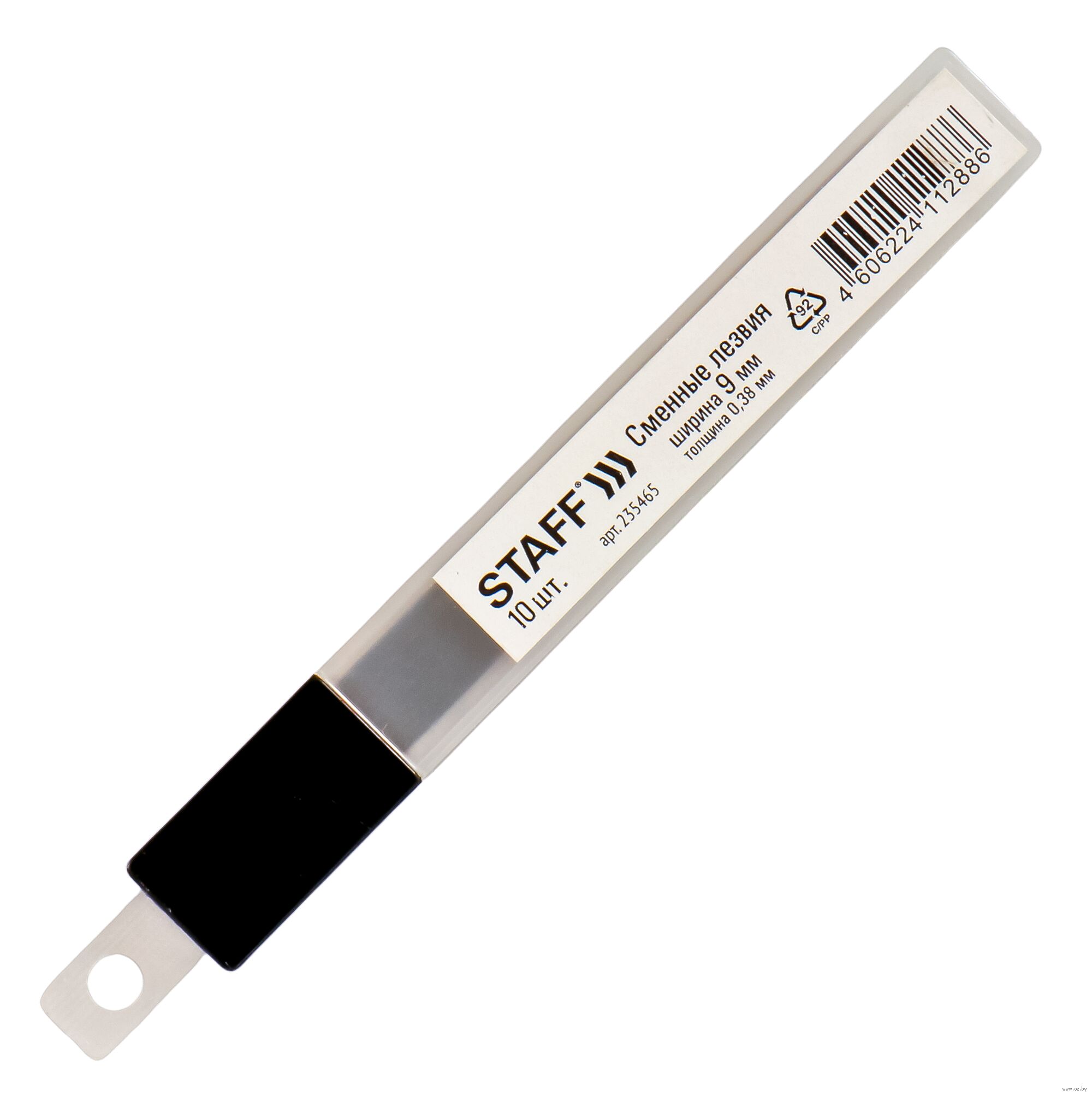 Ширина лезвий – 9 мм, толщина – 0,38 мм. 10 штук в комплекте.