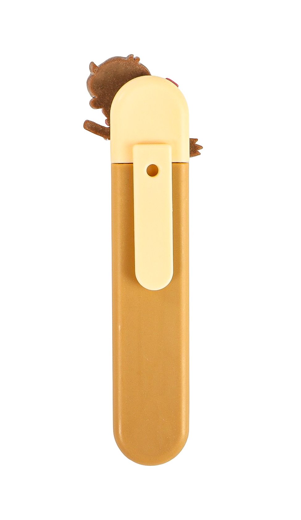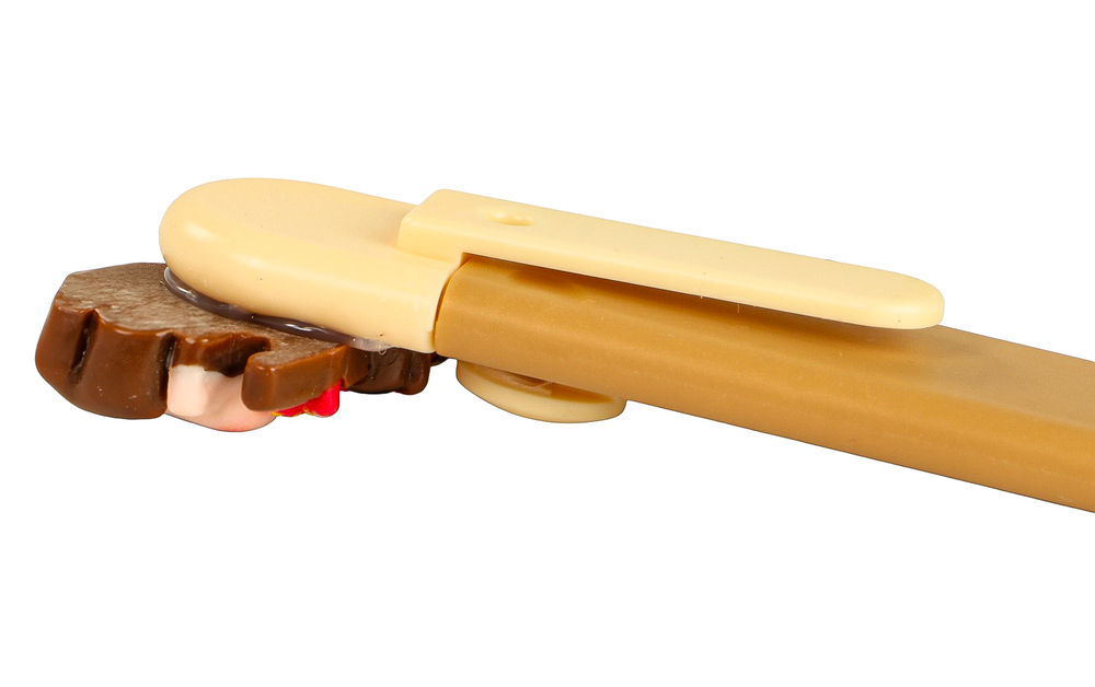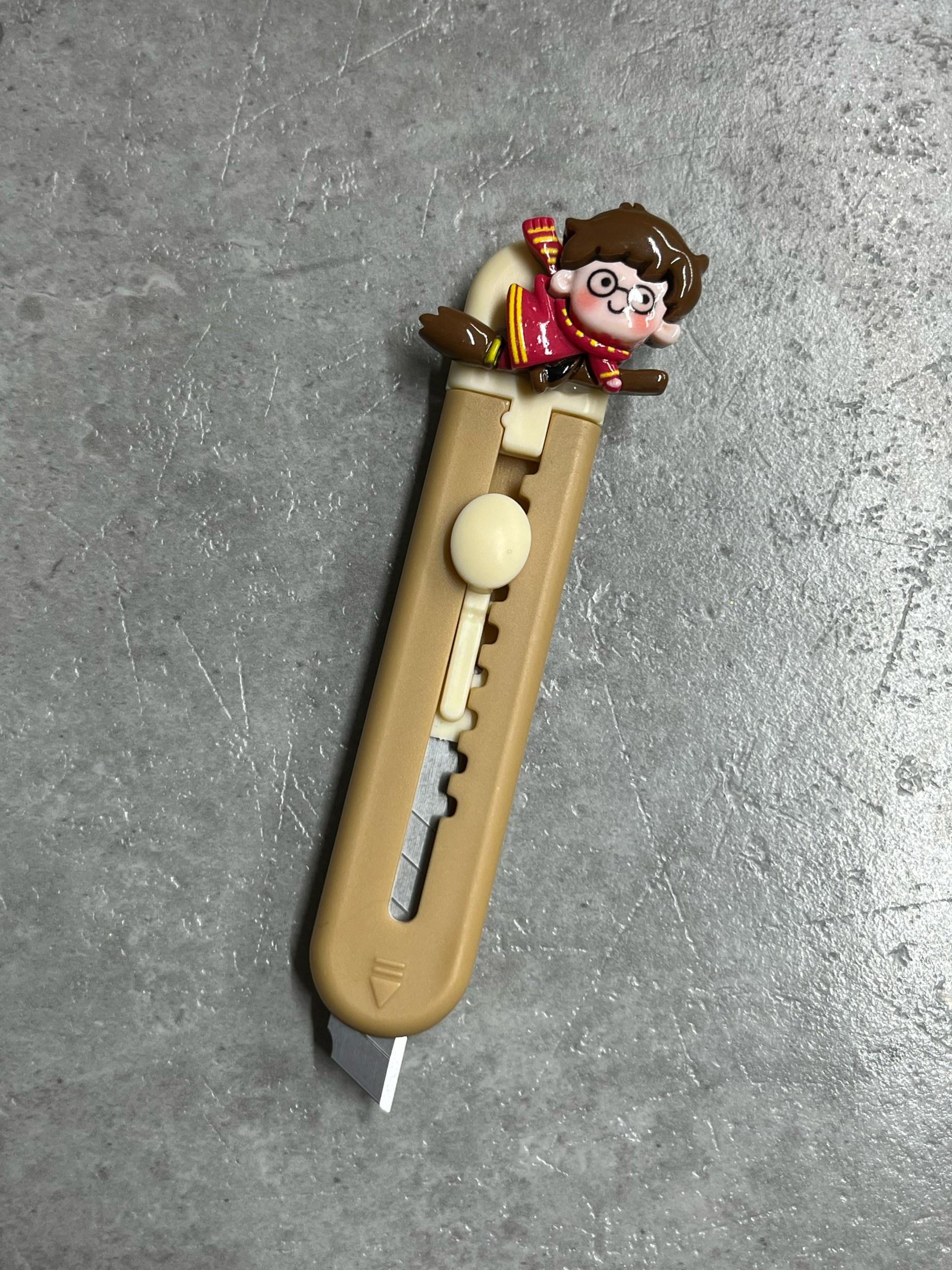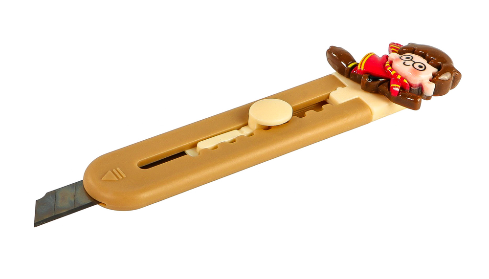Компактный нож с эргономичной резиновой ручкой и металлическим лезвием.
